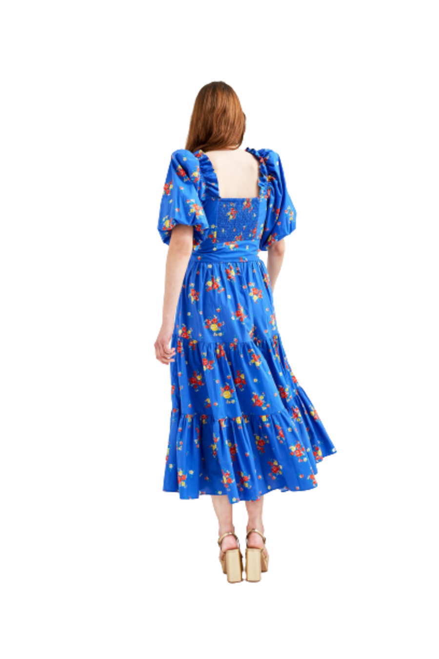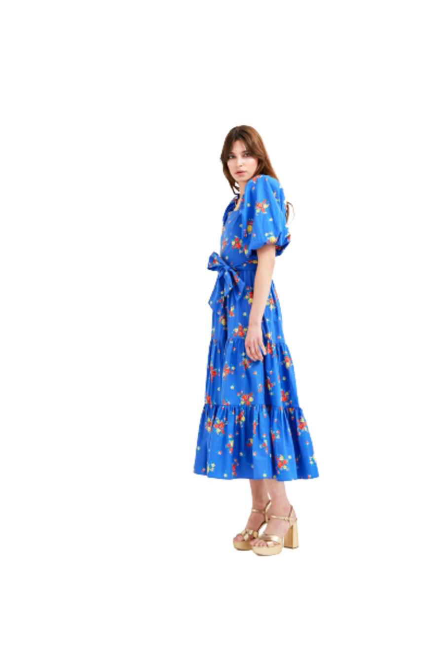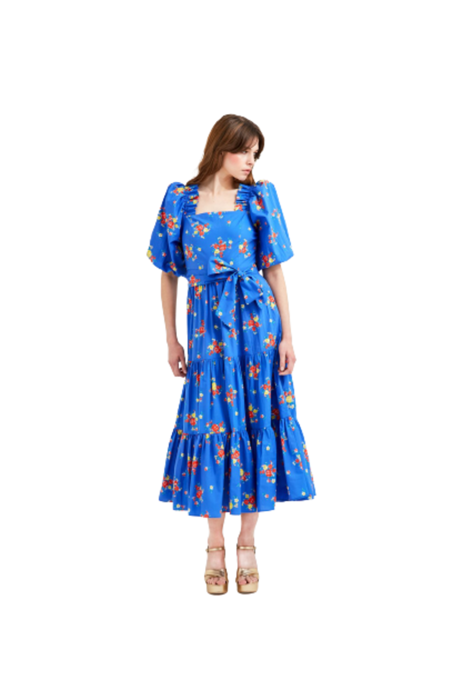 Our Billie dress speaks to the print lover in us all. The combination of our blossom print with the ease and versatility of our 70s inspired sundress will wow at any occasion. The sister of Margaux, our Billie is a summer miracle with puff sleeves, cinched waist and double tiered skirt.