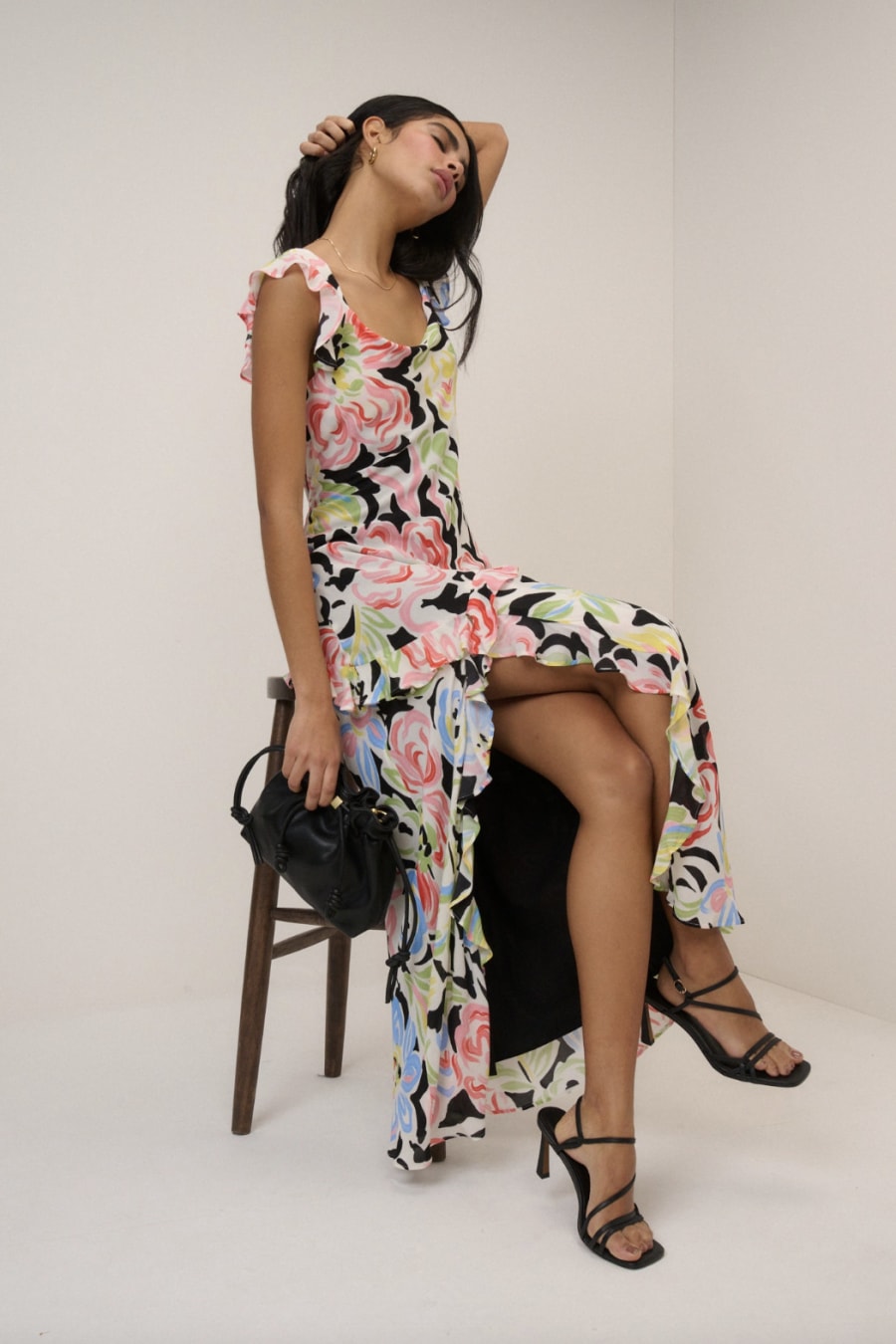 Black Floral Juniper Midi Dress