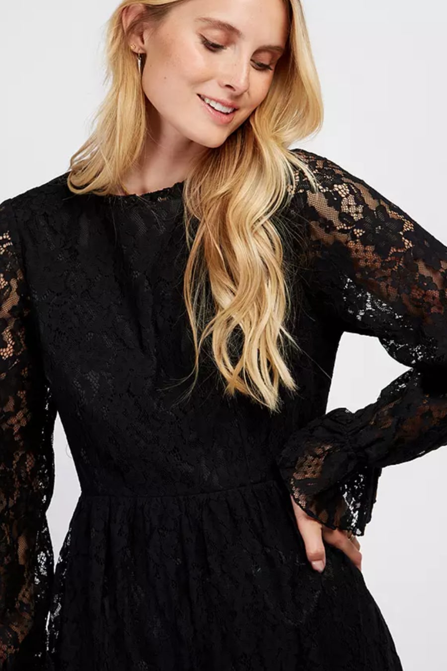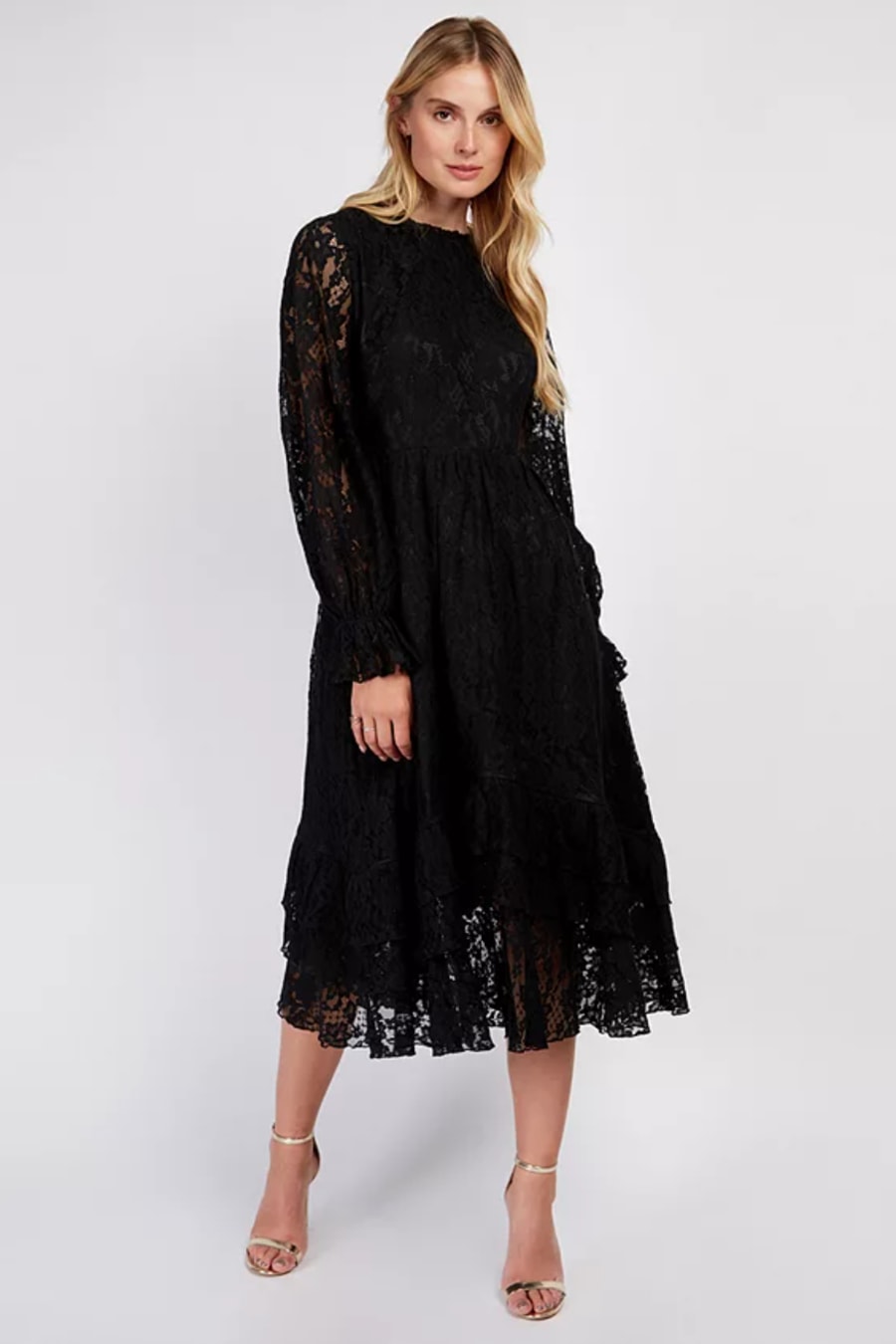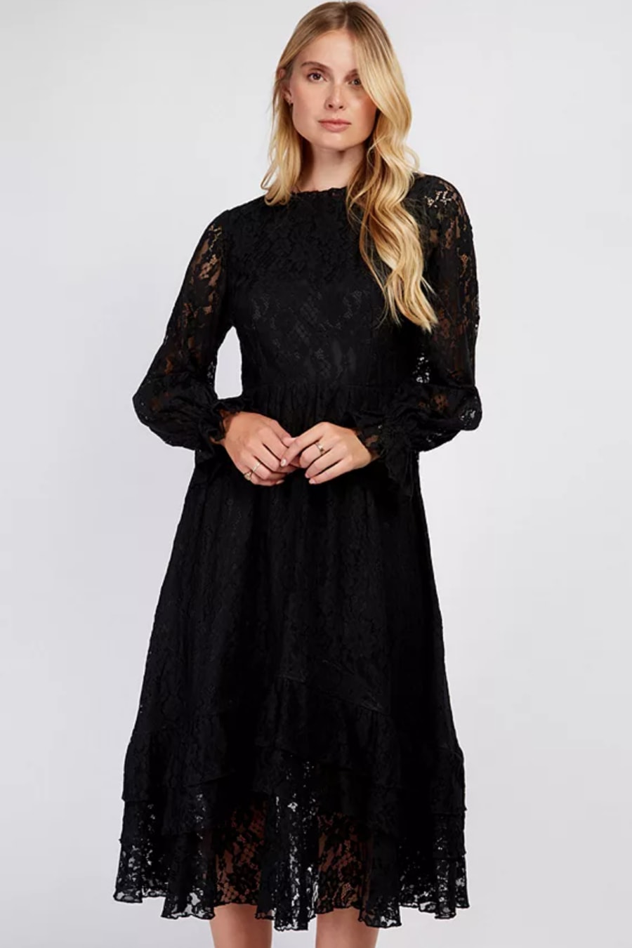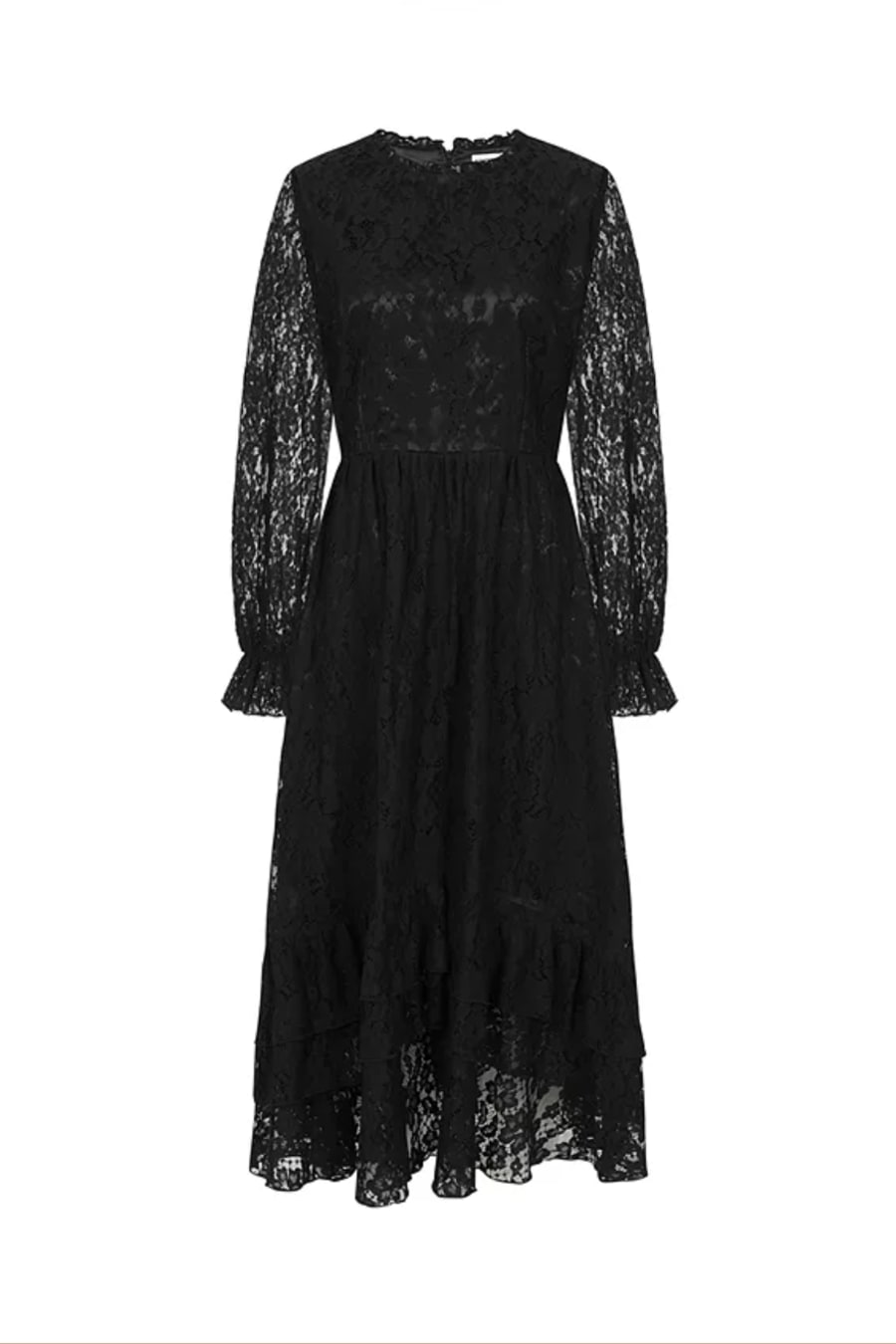 Black Lace Frill Midi Dress
