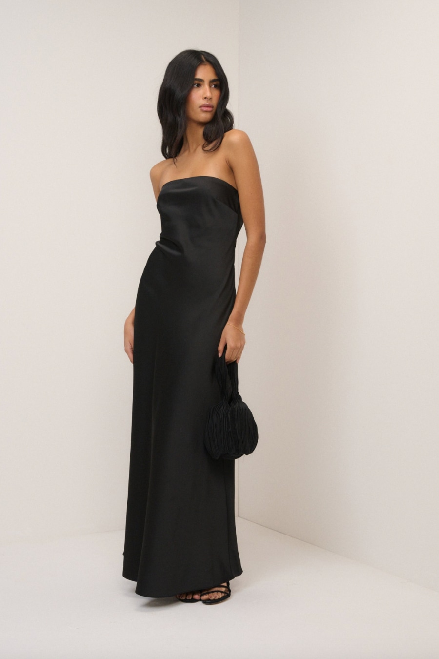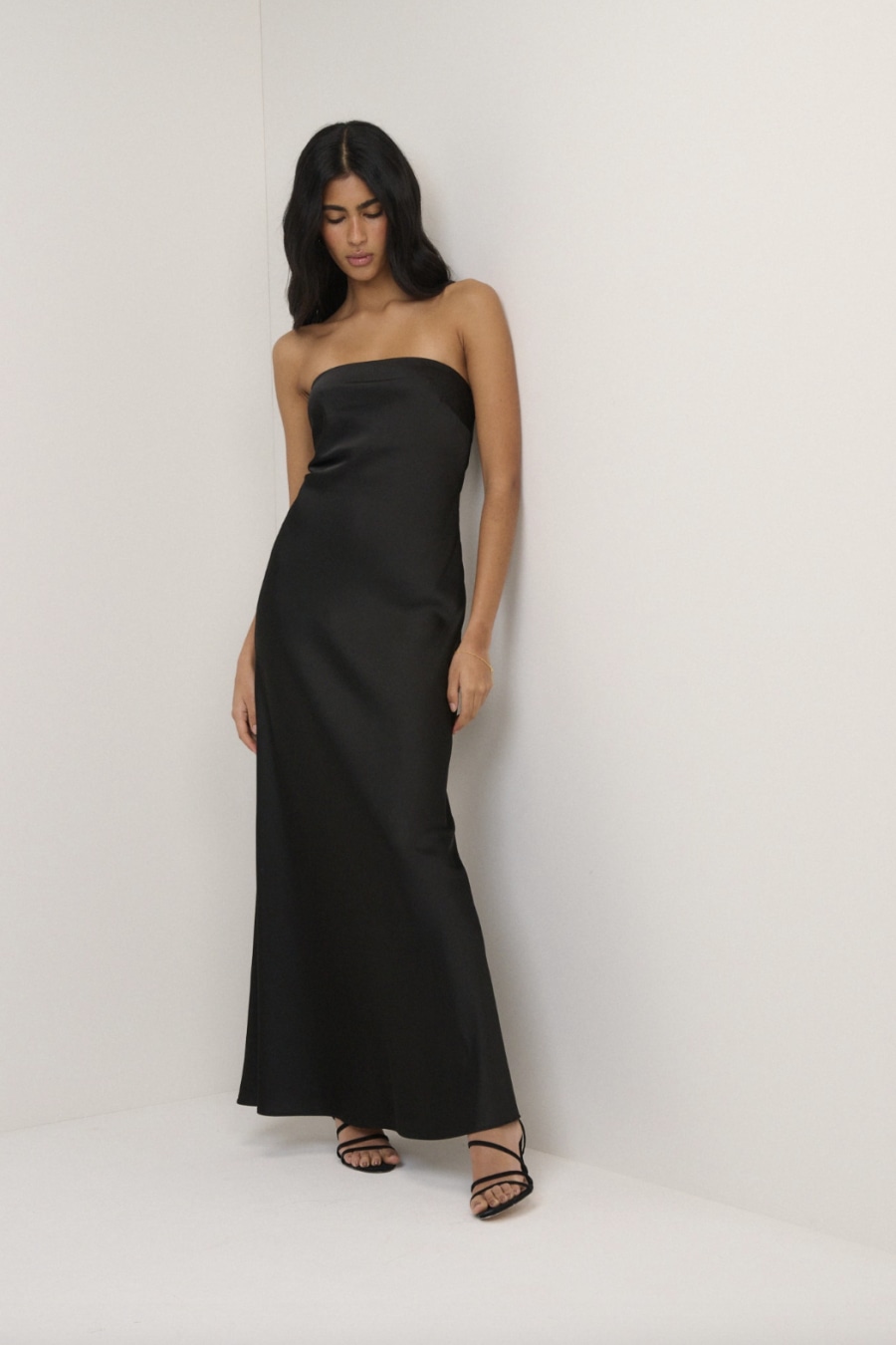 Black Satin Bandeau Arden Maxi Dress