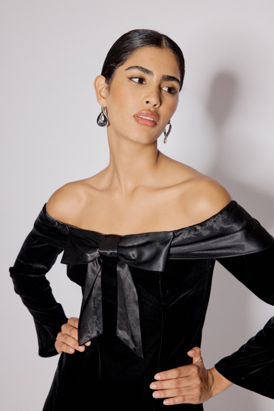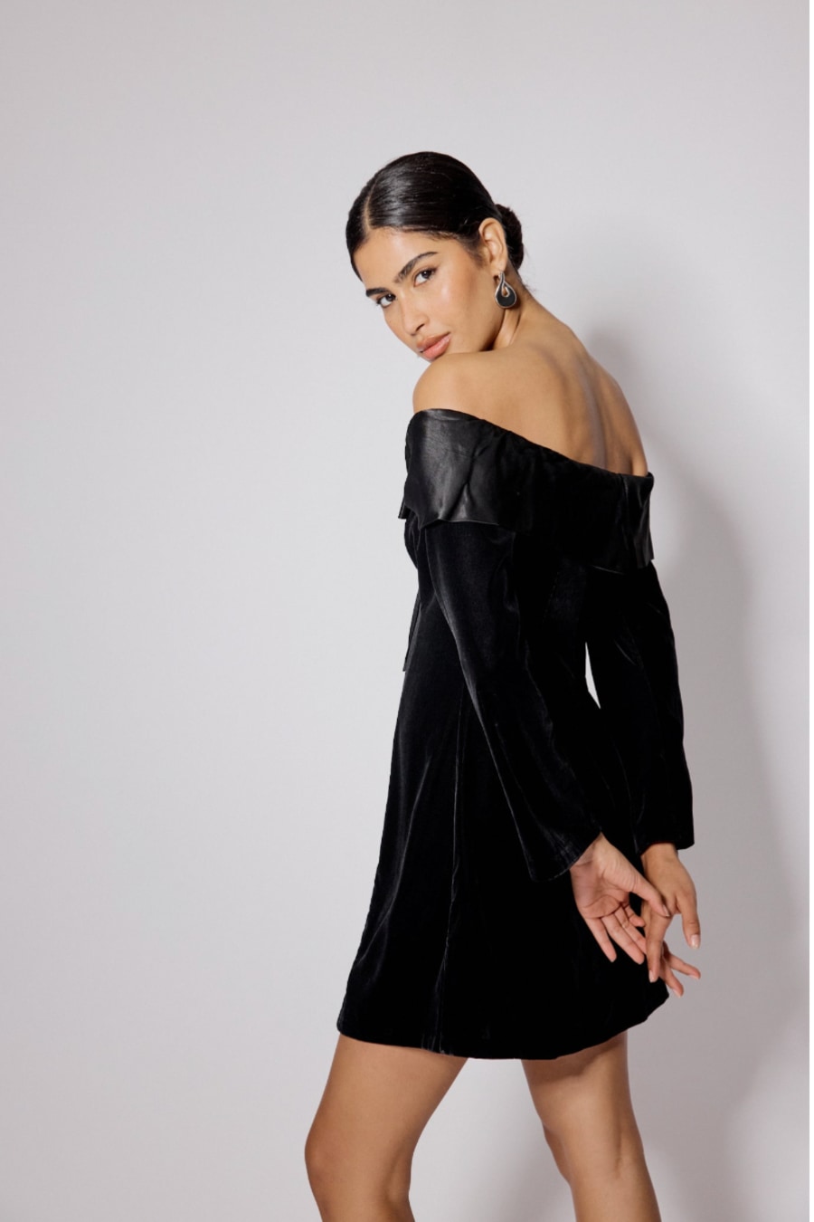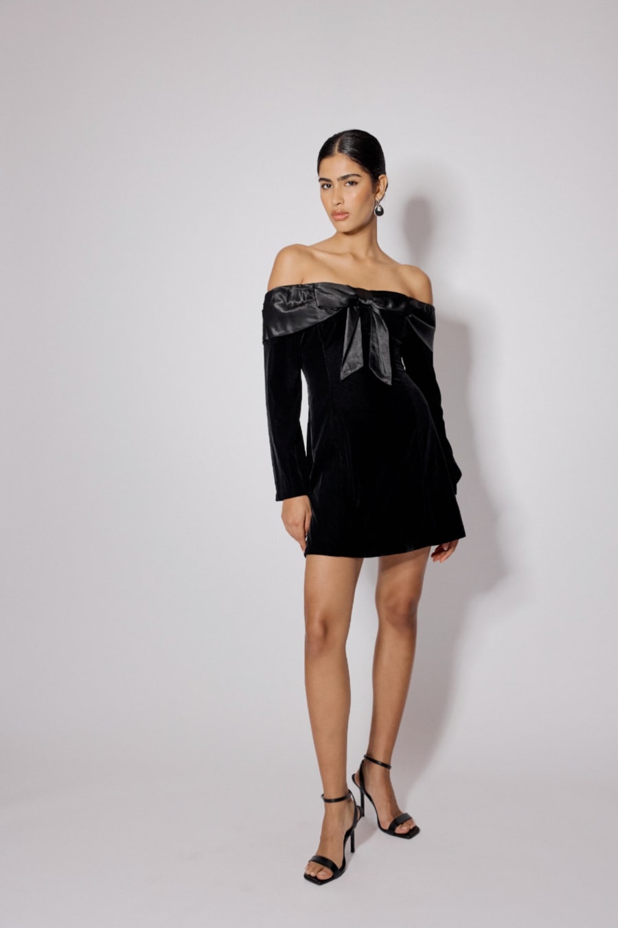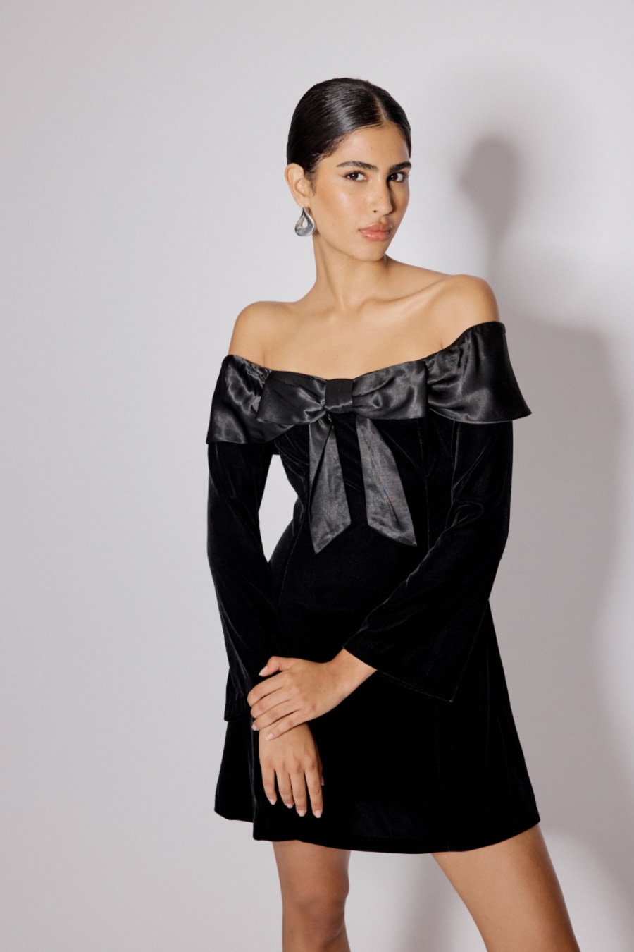 Black Velvet Off Shoulder Bow Capricorn Mini Dress