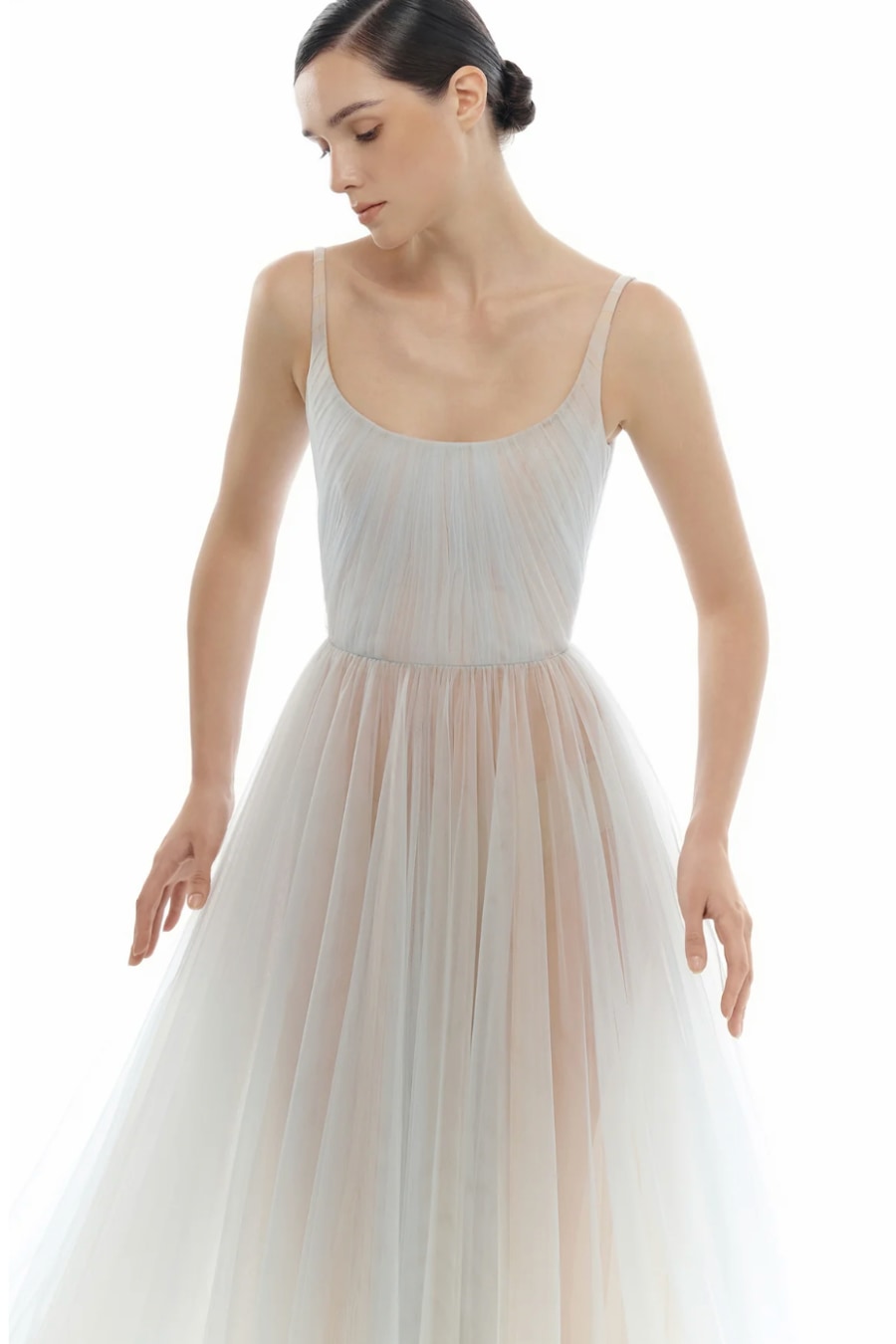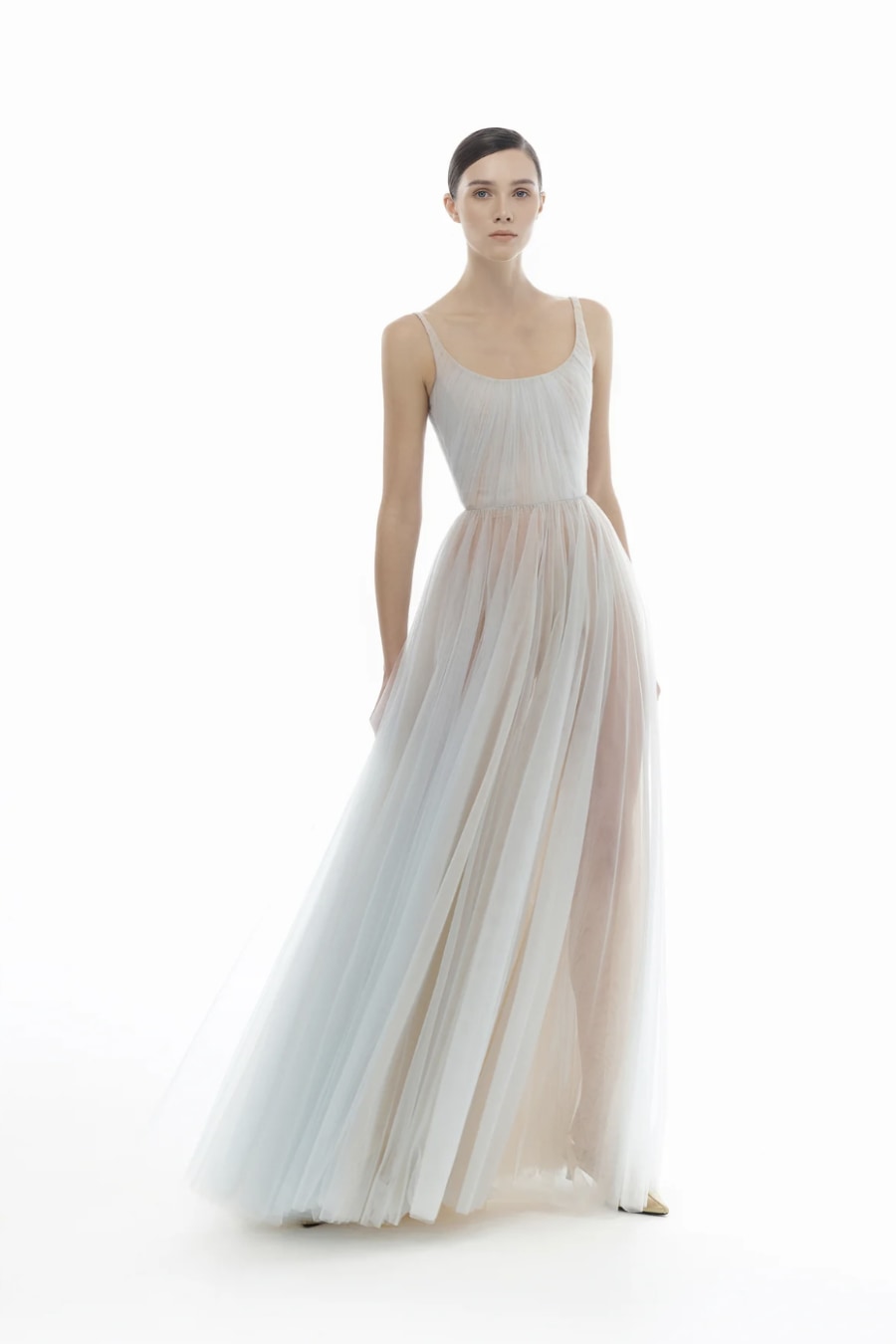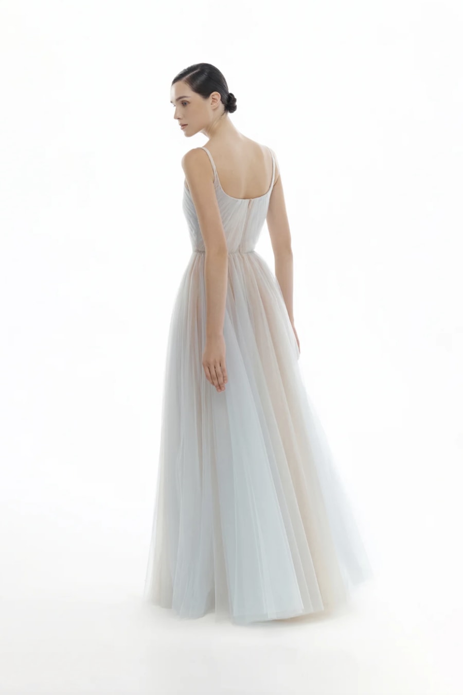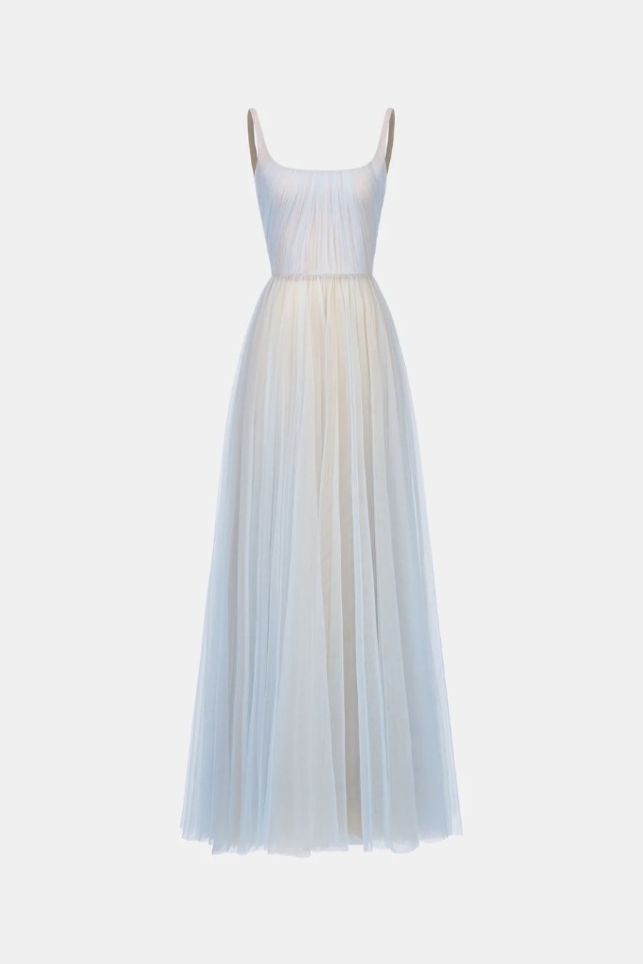 Blue Draped Tulle Maxi Dress