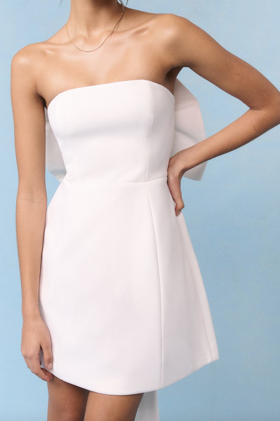 Bridal Ivory Crepe Statement Bow Lucienne Mini Dress