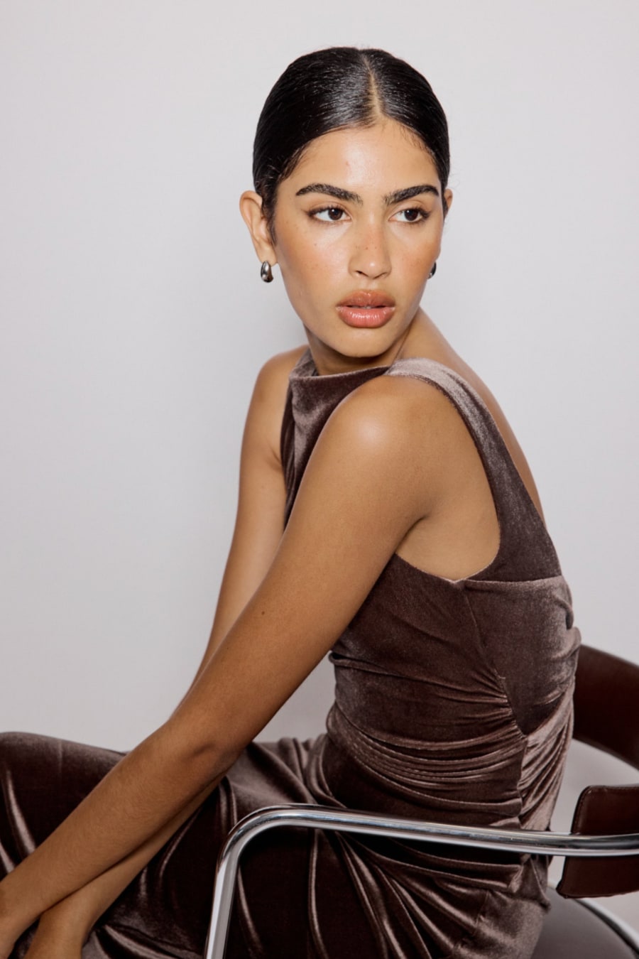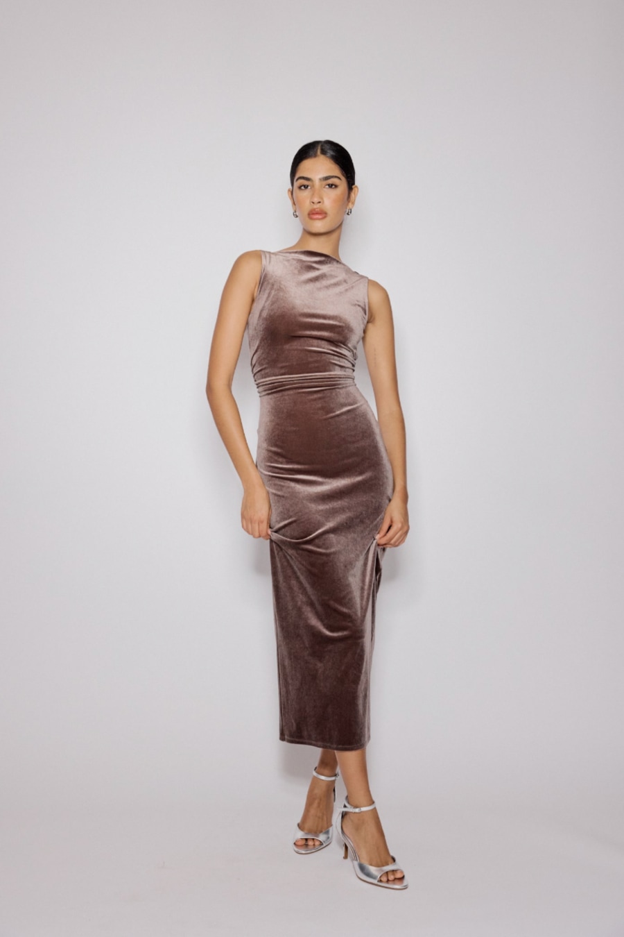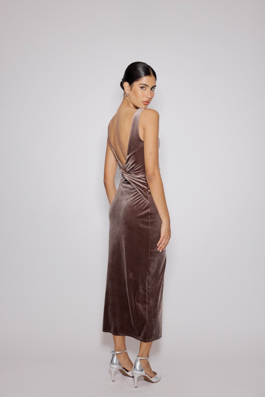 Brown Velvet Margot Midi Dress