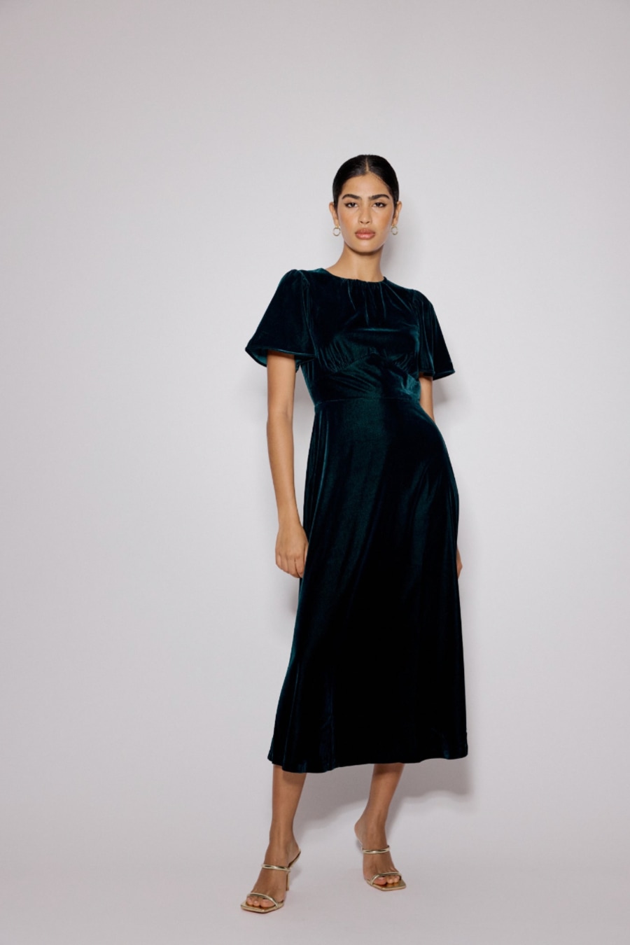 Dark Green Velvet A-Line Allegra Midi Dress