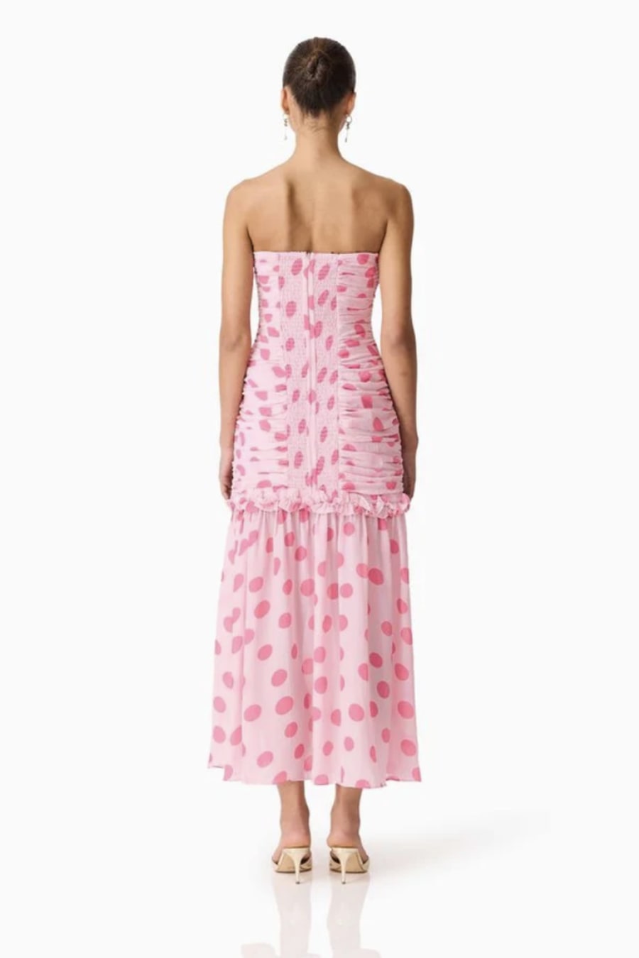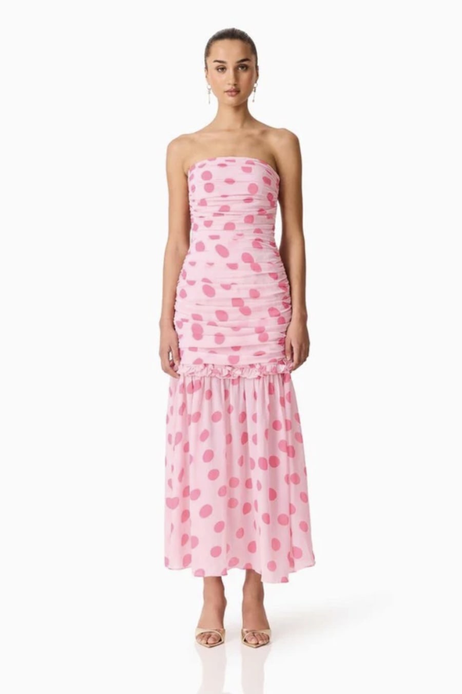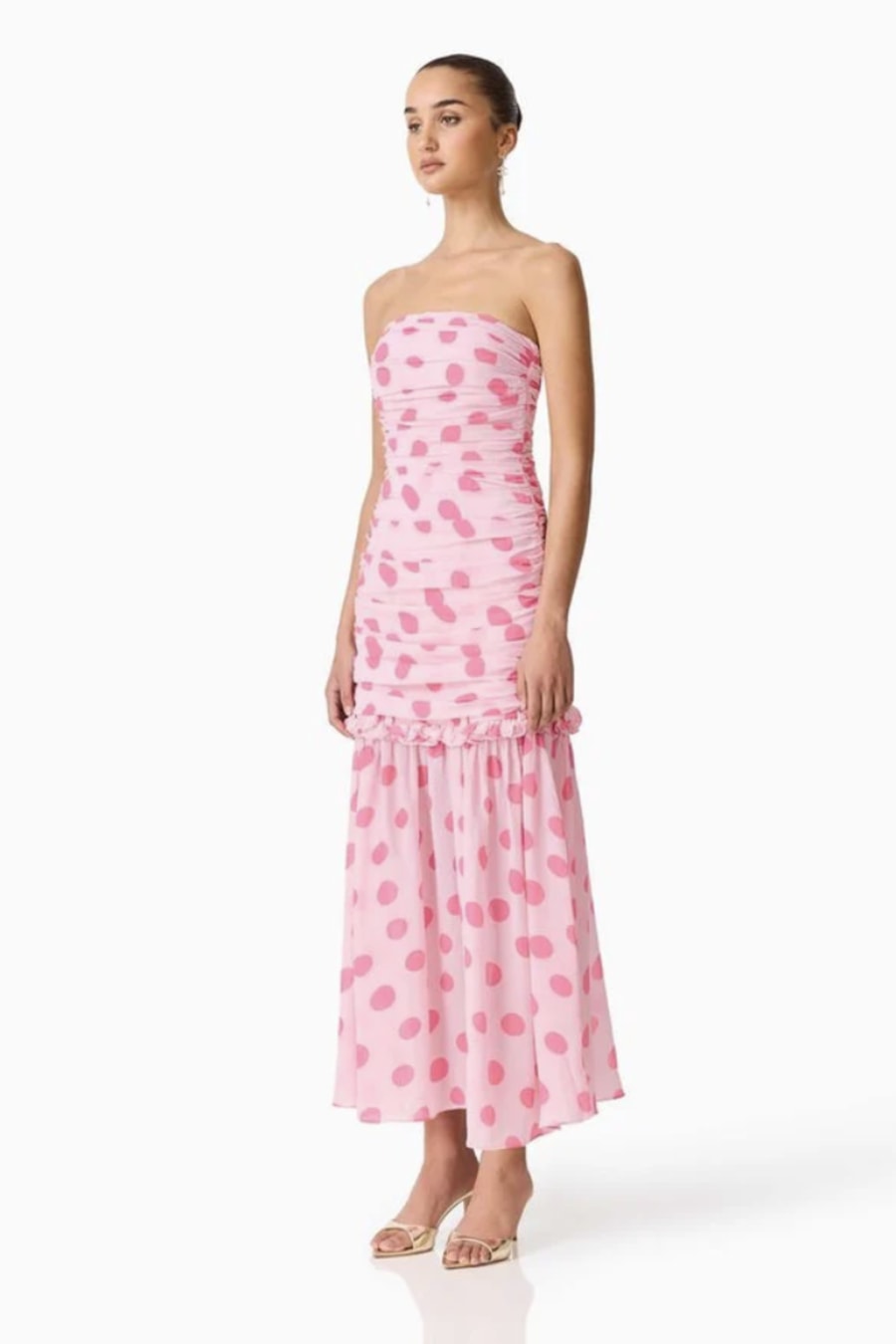 ELLIATT SOLA POLKA DOT STRAPLESS GOWN - PINK
