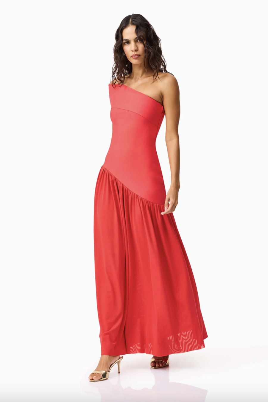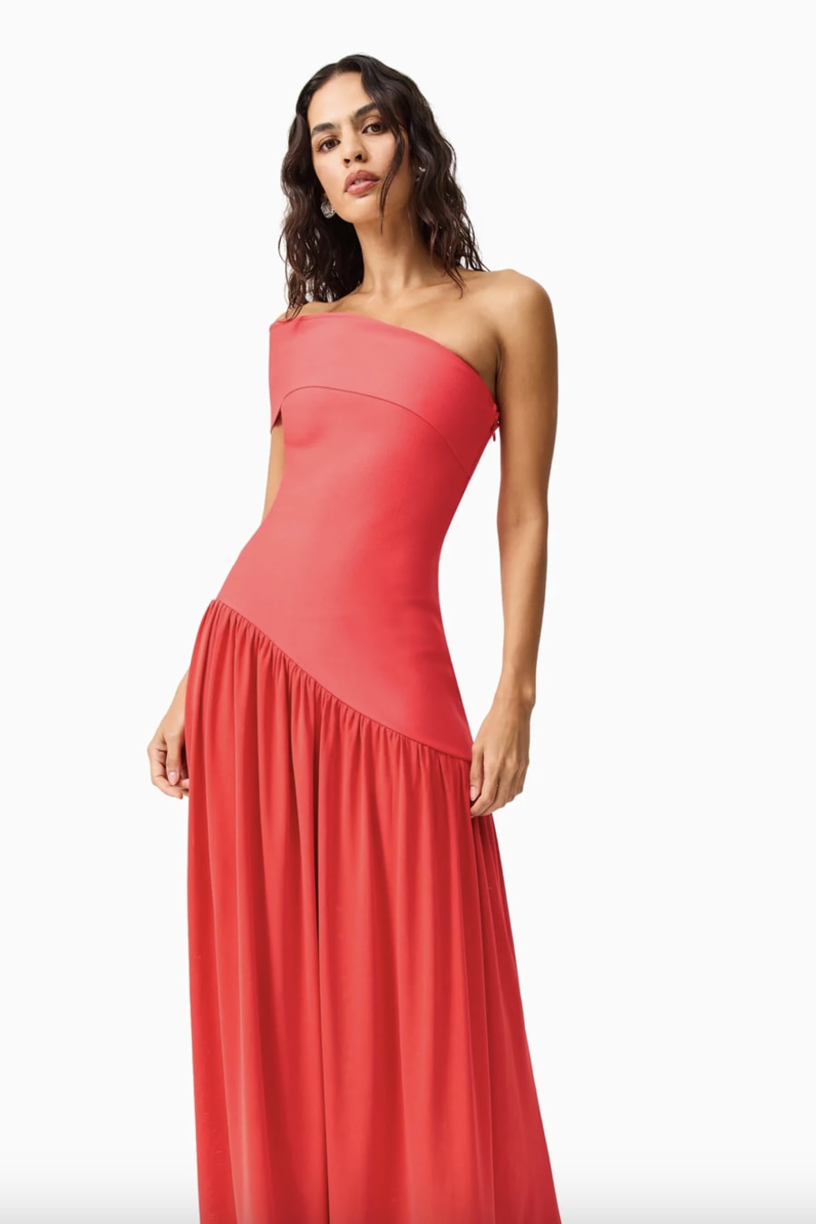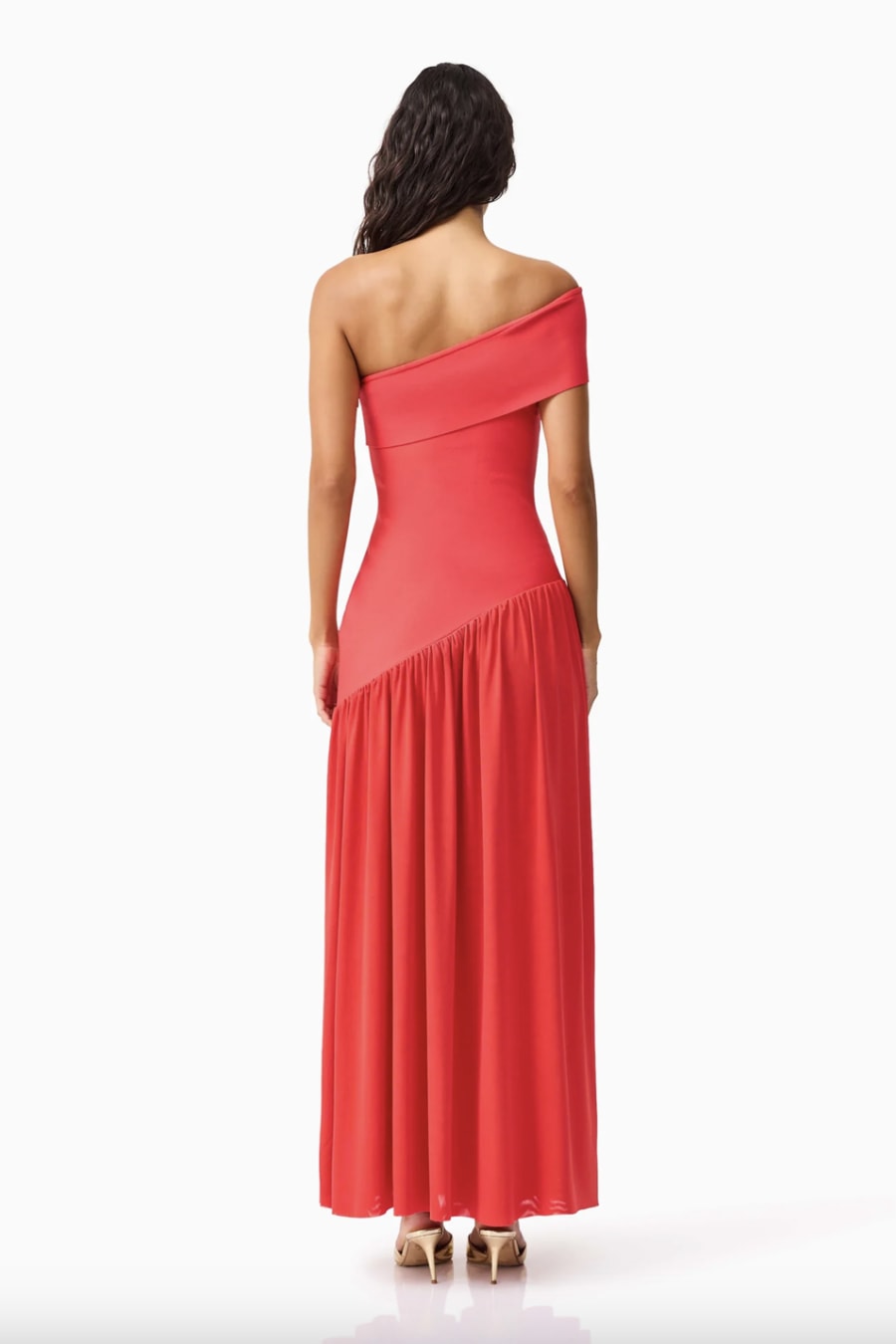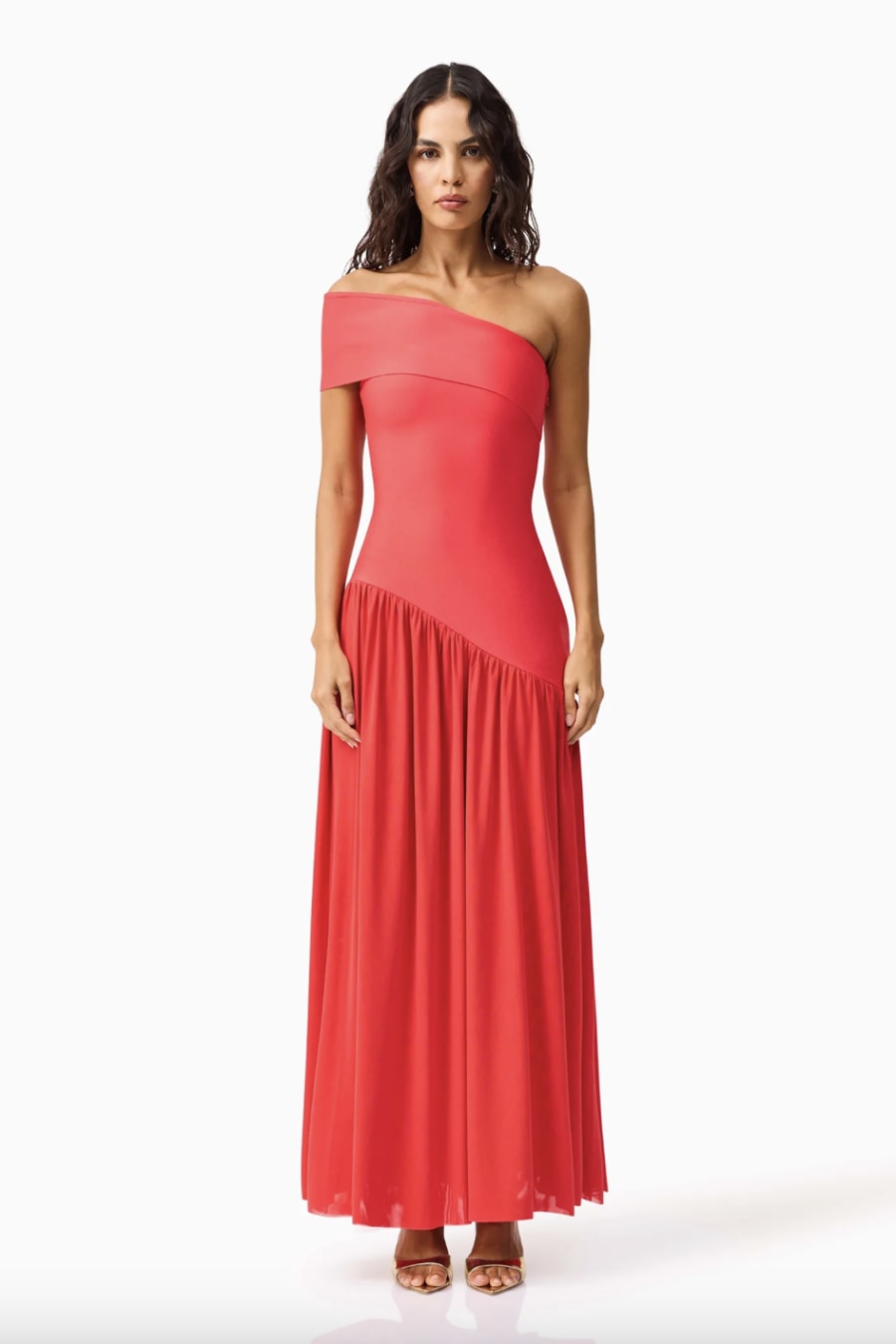 Command the room in the Jesselle Off The Shoulder Gown in Red, a sleek, sculpted design that blends bold elegance with modern femininity. This statement gown features a striking one shoulder neckline that wraps diagonally across the décolletage, offering a contemporary twist on classic glamour.