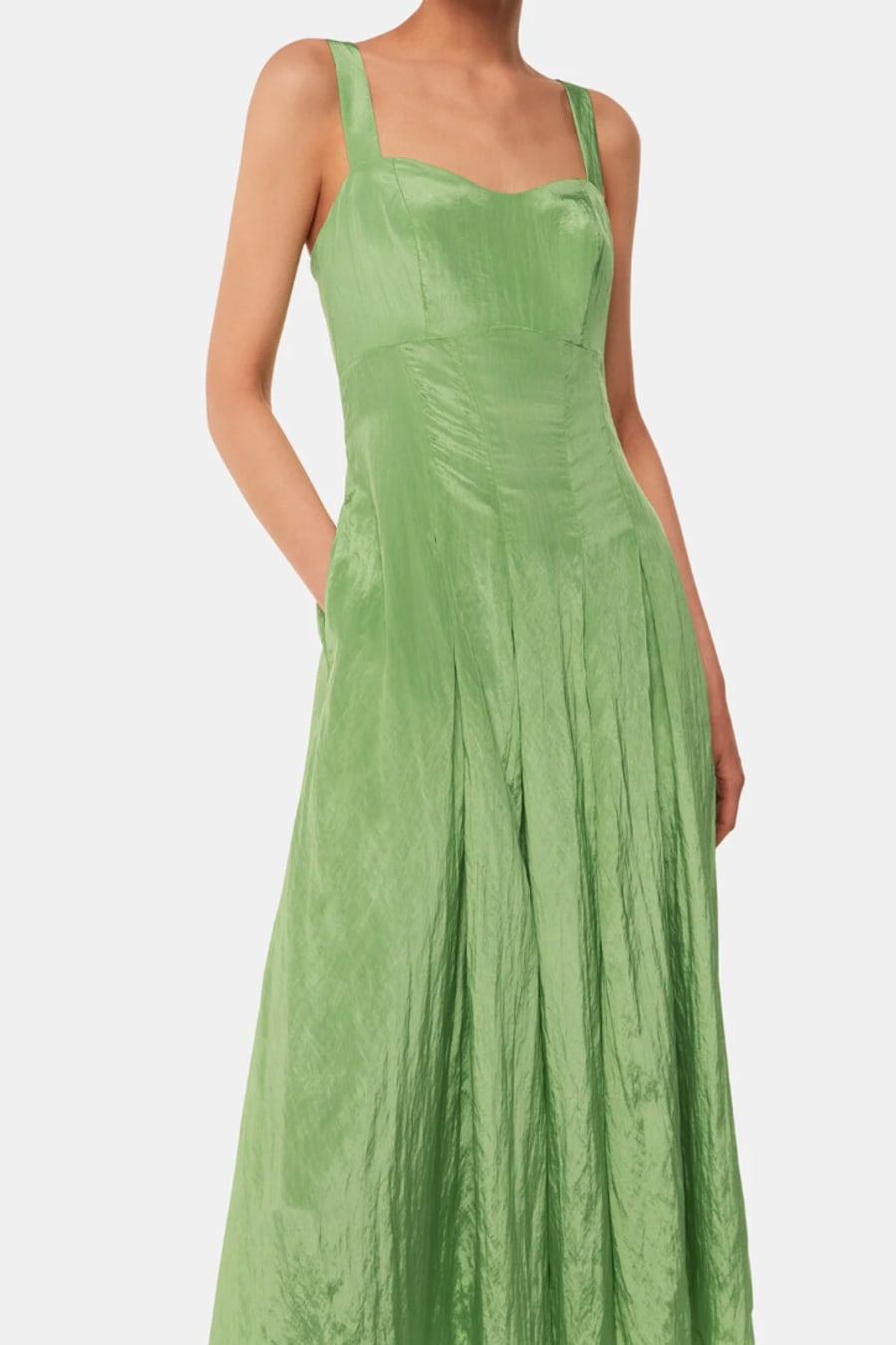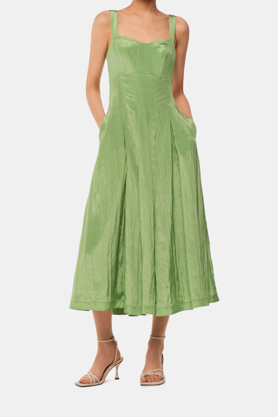 Embrace the radiant spirit of this season with our Kori Midi Dress, destined to become an ultimate wardrobe staple for both daytime events and evening soirees. Crafted in a light shade of green, the dress boasts a wearable silhouette with room for movement. It’s designed with sweetheart sleeves, a subtle V-neckline and a flare bottom. Pair it with high heels or any sandals.