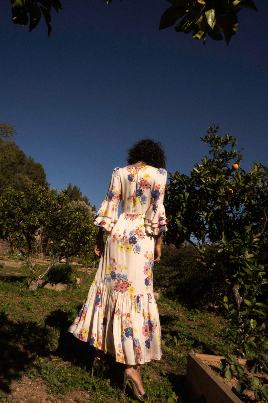 Extravagant day time dressing has arrived in Leigh. Soft oyster white base with a sateen finish with our floral print sitting atop. Triple tier sleeve gives it a QoA feel. A complete showstopper for all occasions.
