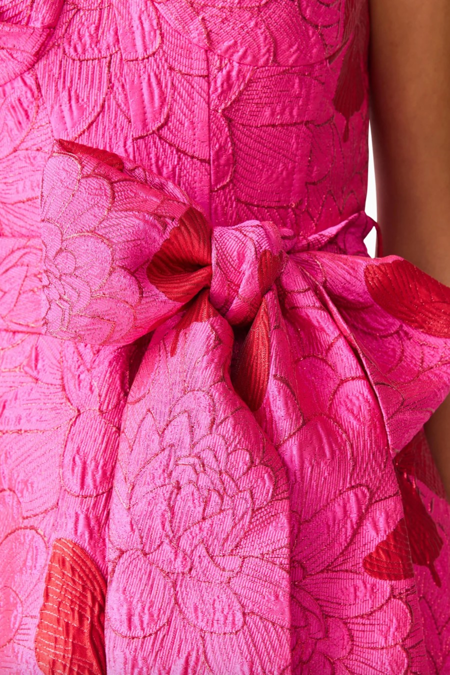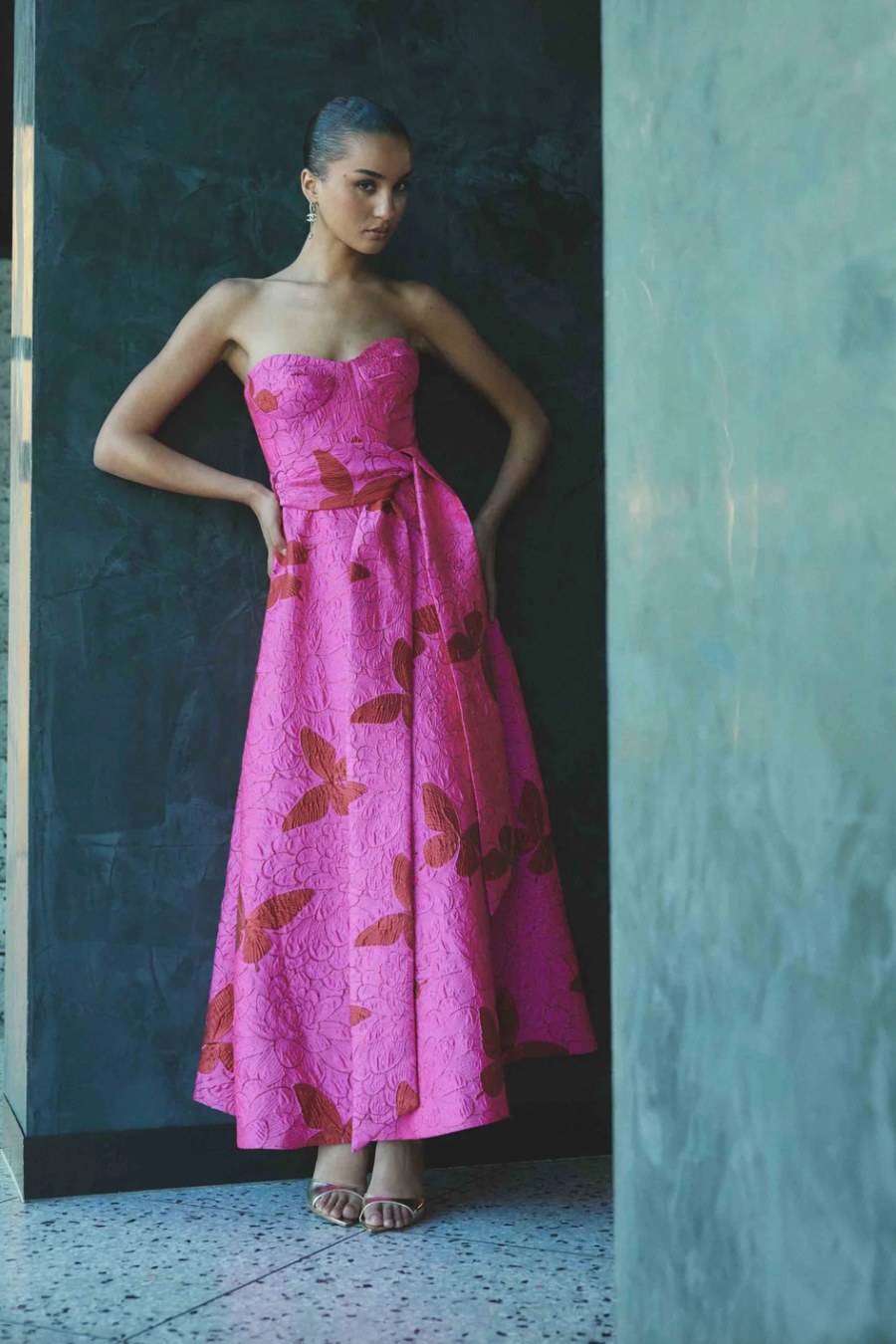 Designed with meticulous attention to detail, the gown features a centre back invisible closure for a seamless finish, and it is fully lined to provide a smooth, comfortable fit from top to hem. The Lorena Jacquard Strapless Gown in Pink combines elegance, sophistication, and a contemporary edge, making it a standout choice for those seeking a refined and flattering evening look.