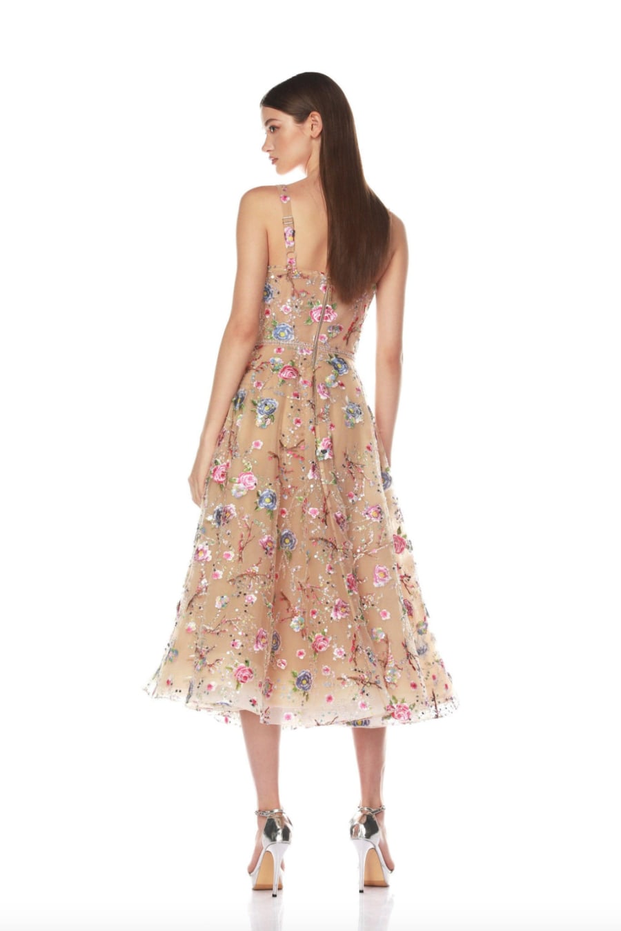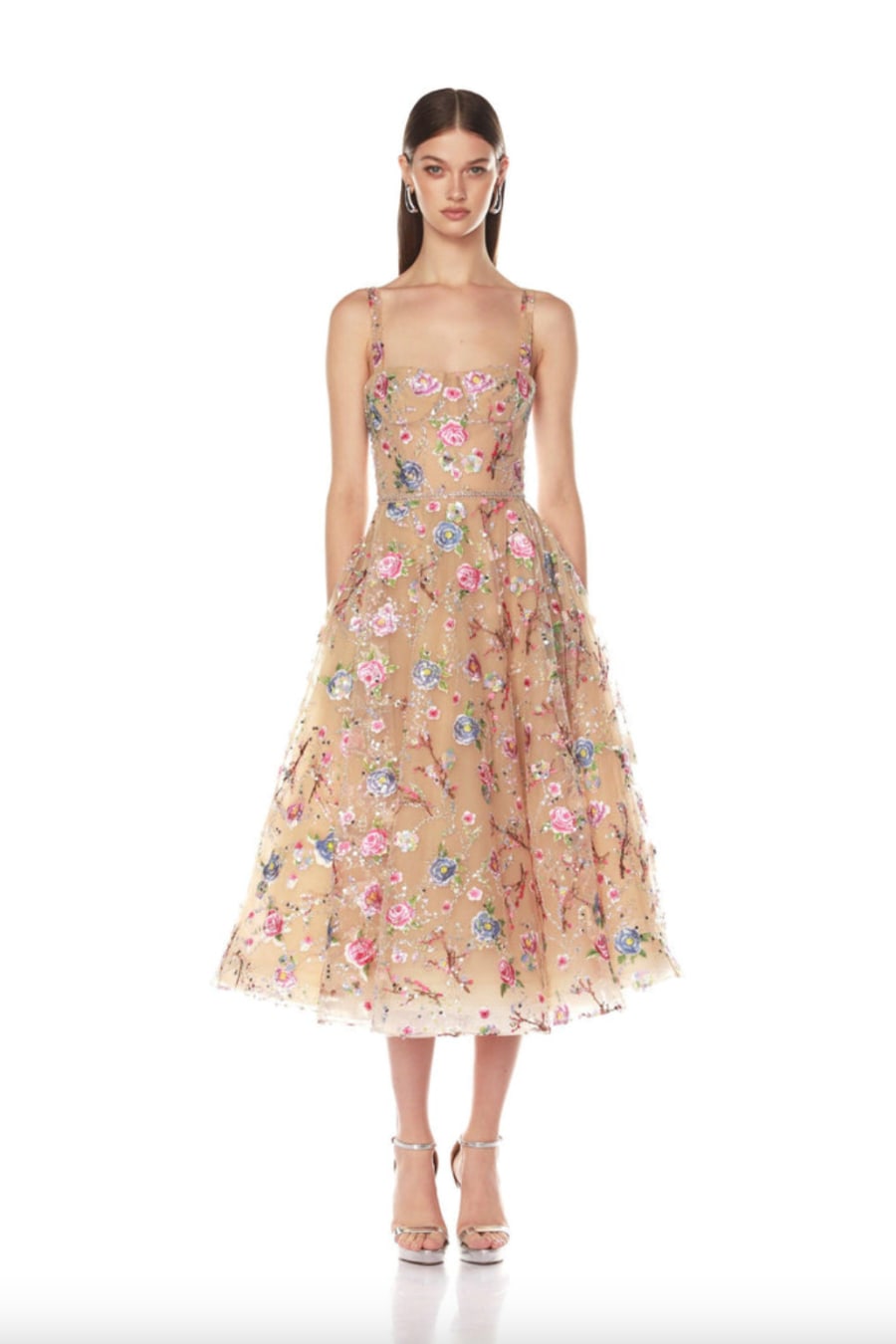 Mademoiselle Embroidered Gold Floral Midi Dress