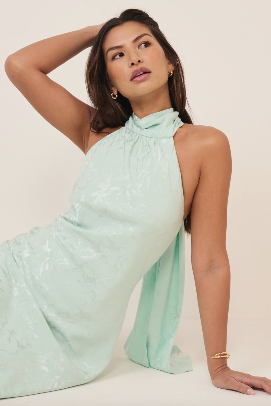 Mint Green Floral Jacquard Fifi Maxi Dress