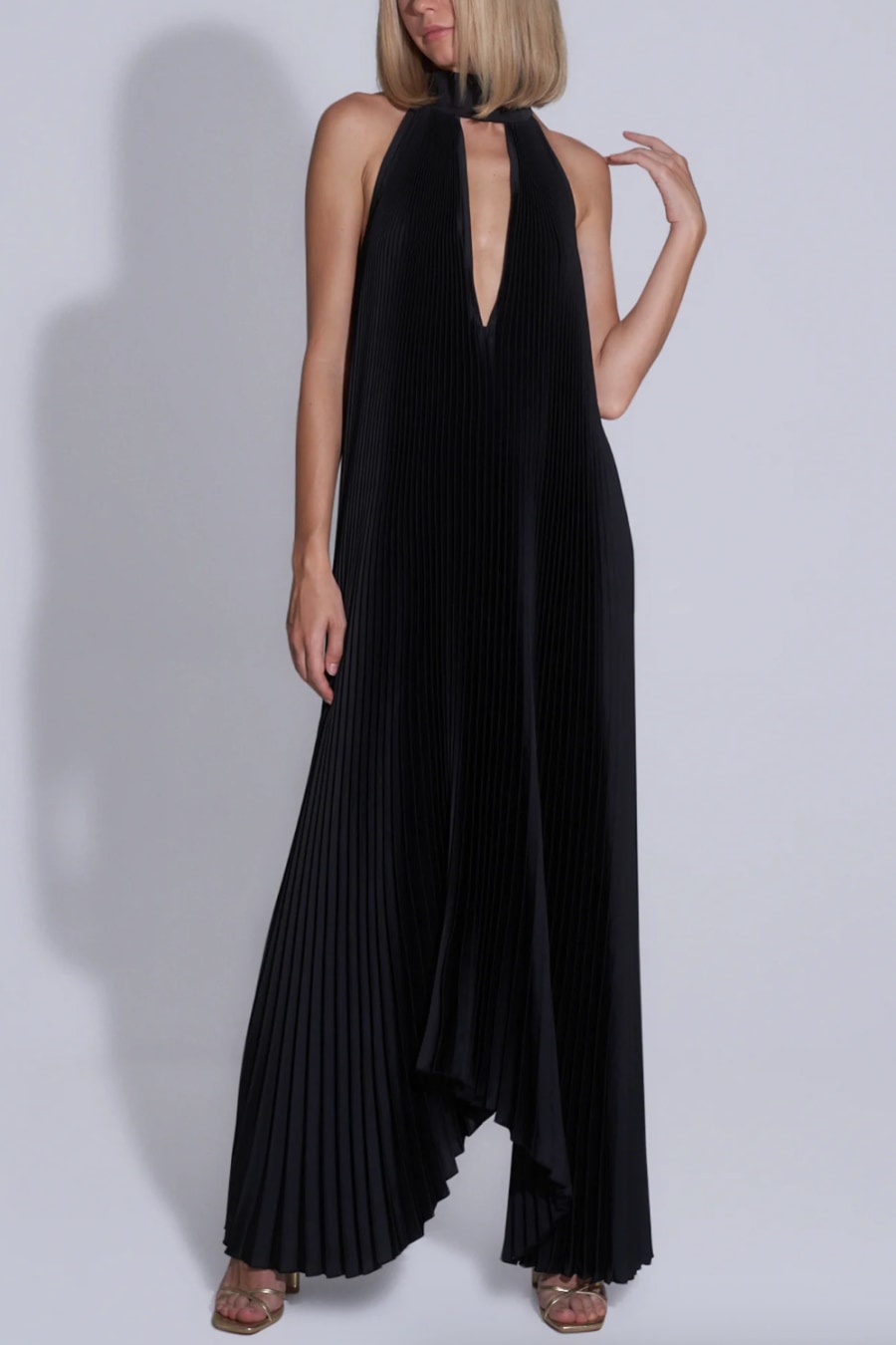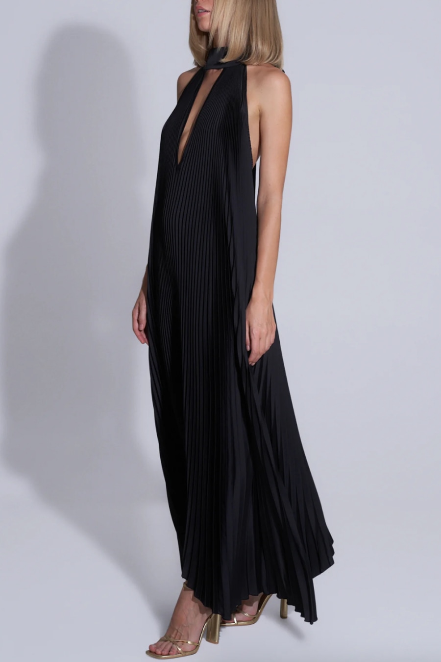 Embracing a flair for drama & grandeur, the Opera plays carefully with modern elegance. Featuring a high neckline, tie back halter and asymmetrical silhouette, this stunning billowing pleat full-length dress will transform you for an evening to remember.