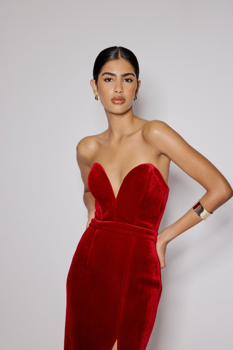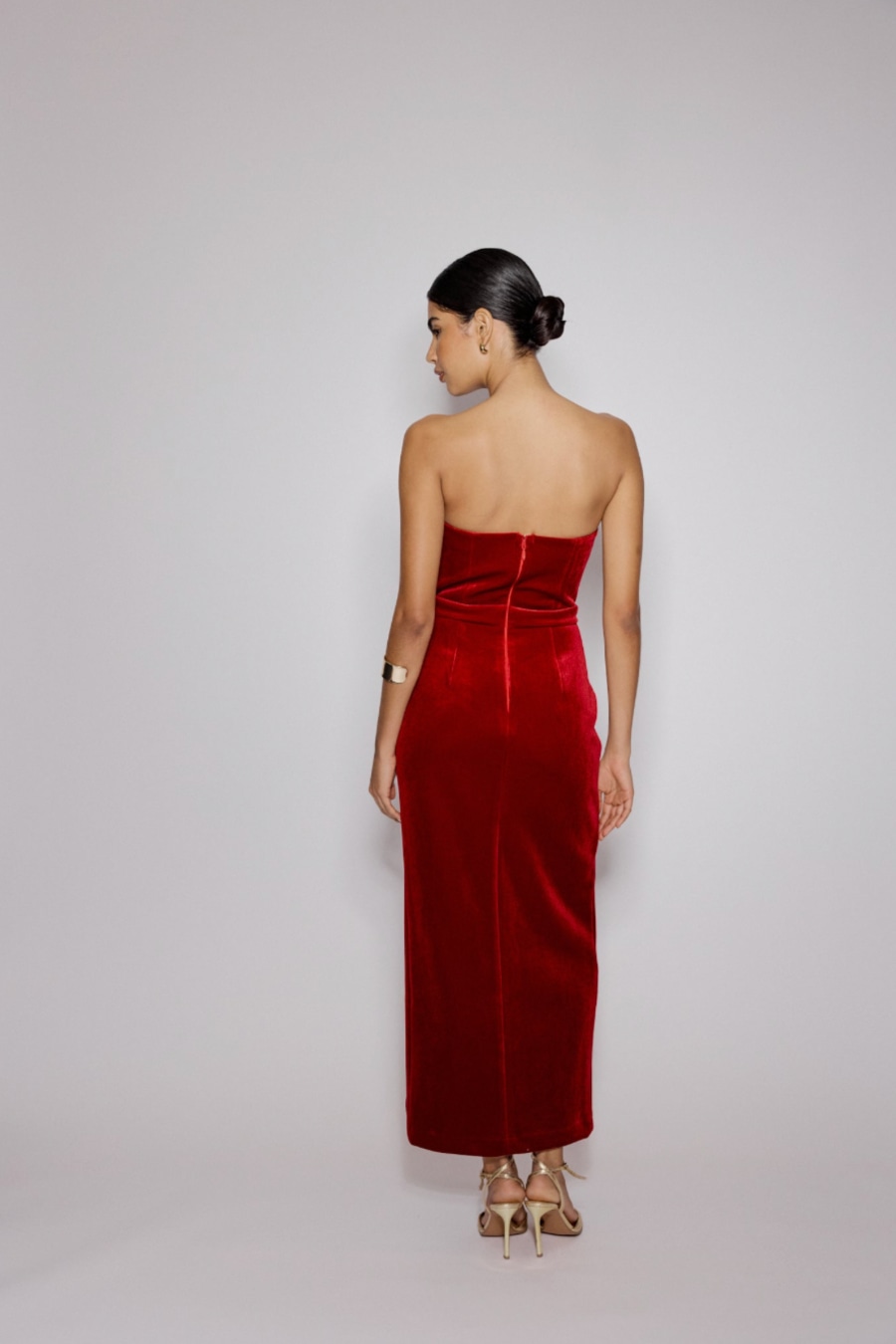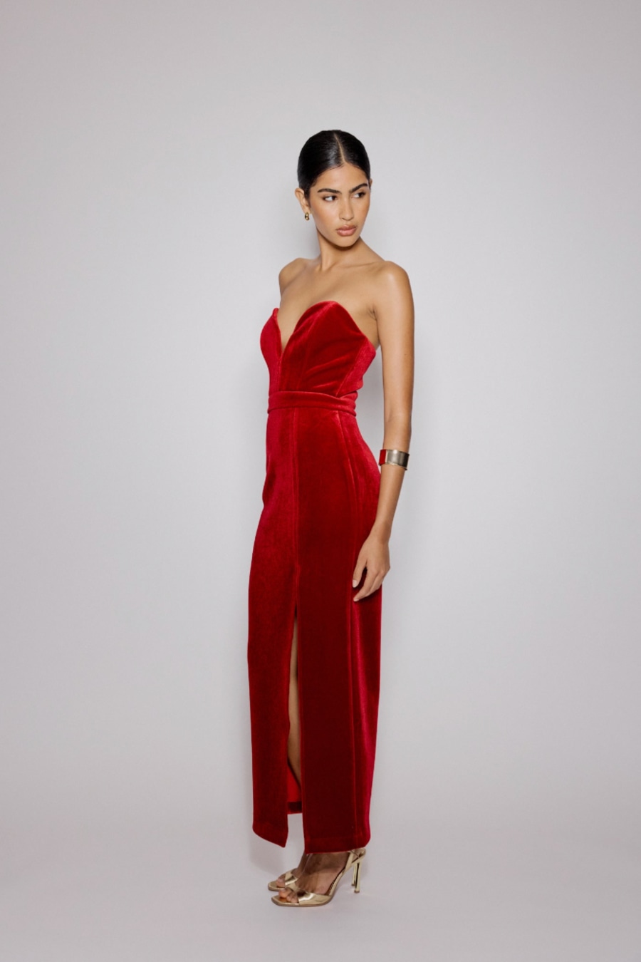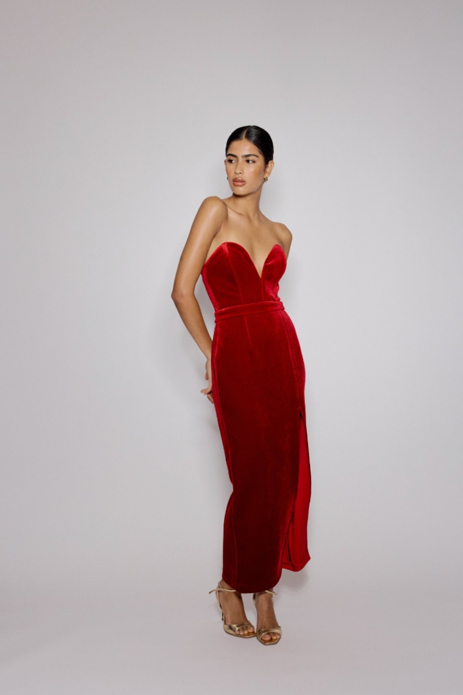 Red Sweetheart Bandeau Velvet Nola Midi Dress