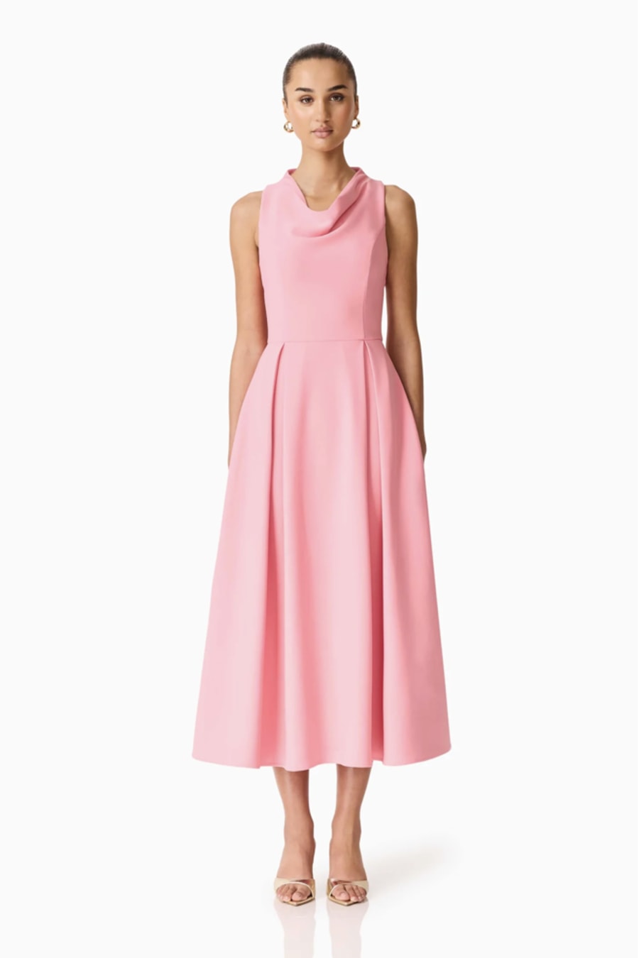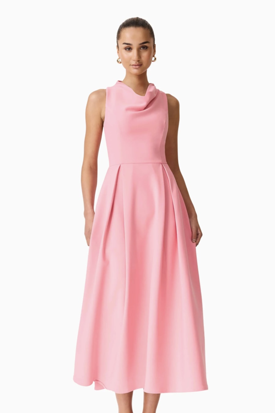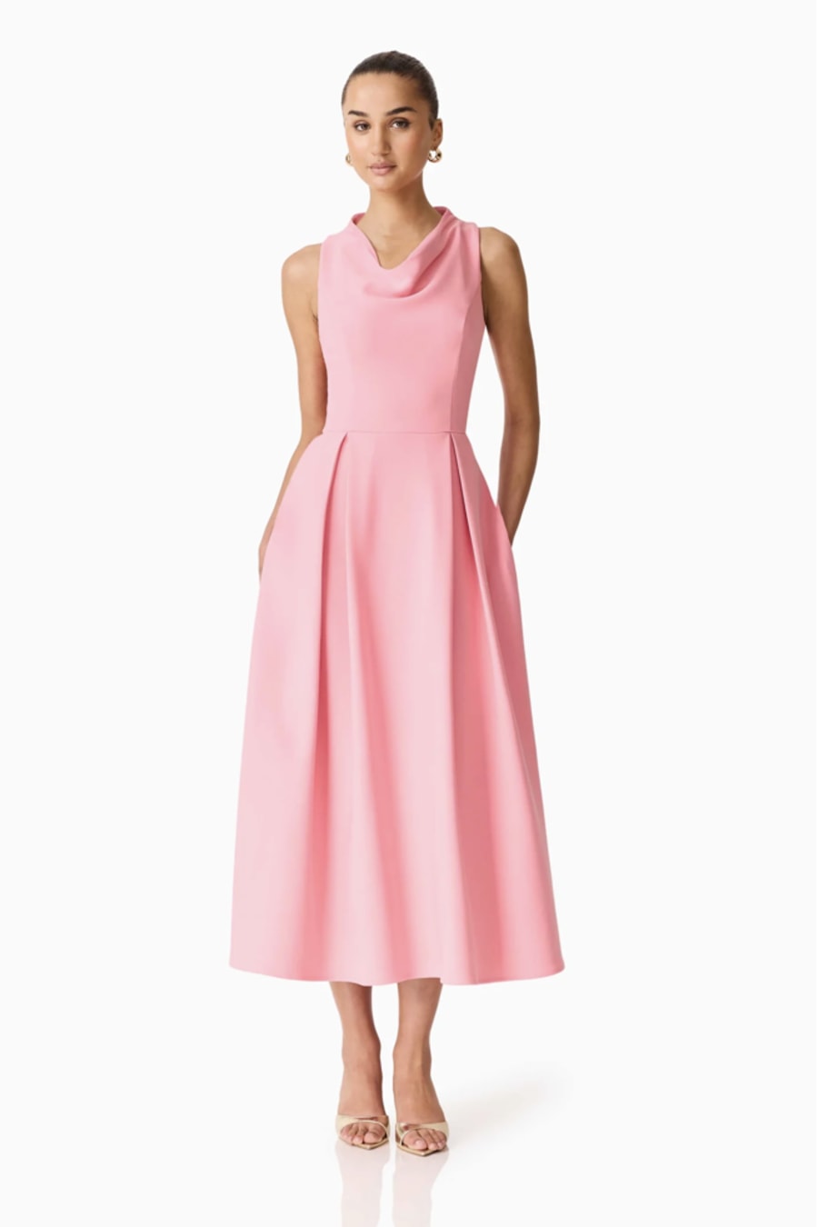 The Risa Cowl Neck Gown Dress in Bubblegum Pink is designed to deliver effortless elegance with a modern edge. Featuring a softly draped cowl neckline, this gown creates a flattering focal point across the bodice while enhancing the overall silhouette. The vibrant bubblegum pink hue adds a bold yet feminine touch, making it ideal for evening events, weddings, or formal celebrations.