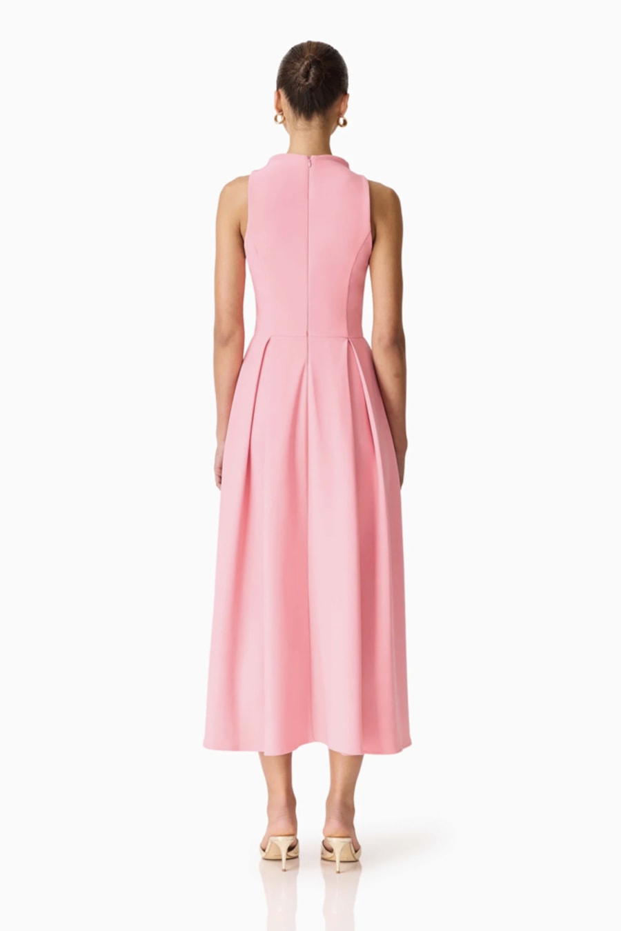 Crafted from Bella stretch crepe fabrication, the gown offers a smooth, structured finish with a comfortable feel. The fitted design contours the body beautifully, while the fabric has stretch, allowing for ease of movement and a confident fit throughout the night. A flowing pleated skirt adds graceful movement and dimension, creating a balanced contrast to the streamlined bodice.