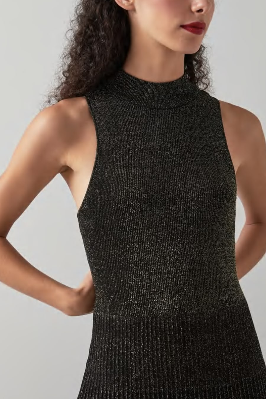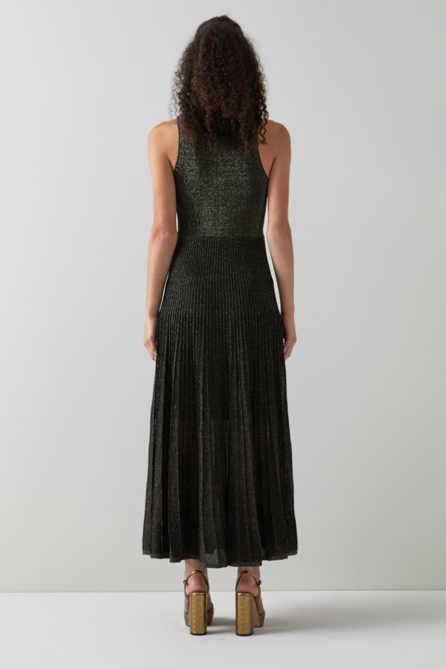 Elegant and understated with just the right amount of sparkle, our new Scott dress has a minimalist approach to party season dressing. Crafted from a beautiful black and gold sparkle knit, it has a turtle neck with a sporty racer cut and an A-line, flippy skirt with pleat detail falling to a midi length. Wear it with a pair of platform heels and pared back jewellery.
