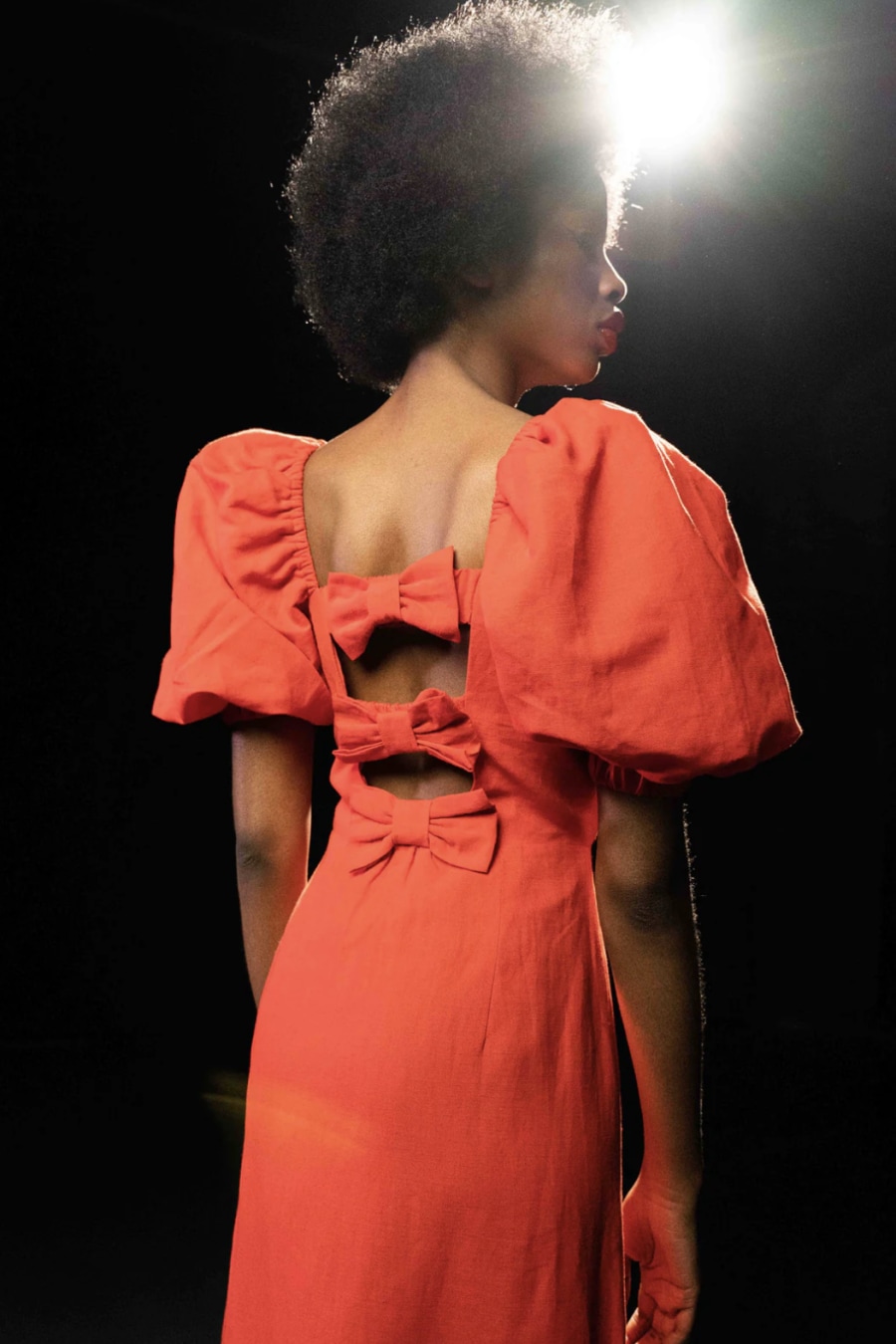 The joy of dreamy springtime is in full effect with Sophia. Her impossibly magnetic appeal brings a fresh mood to our midi dress offering, Puff sleeves filled to perfection with weightless magic so not deflate, three perfectly placed bows to create the most flattering back view covering every kind of bra strap to ensure your comfort which is always at the helm of what we do and to top it off, a fit like no other.