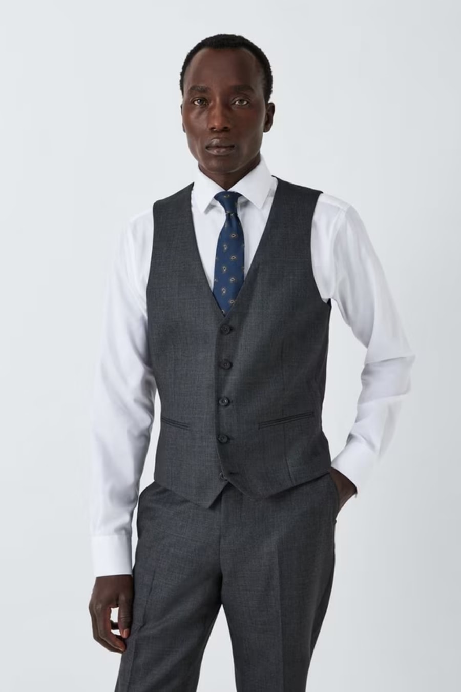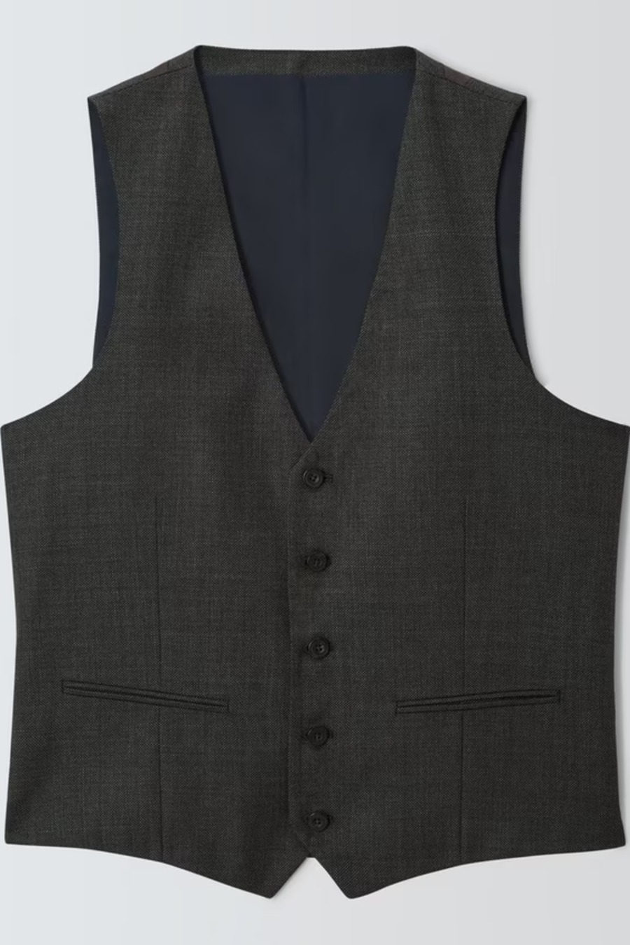 Super 100's Birdseye Wool Suit Waistcoat, Charcoal