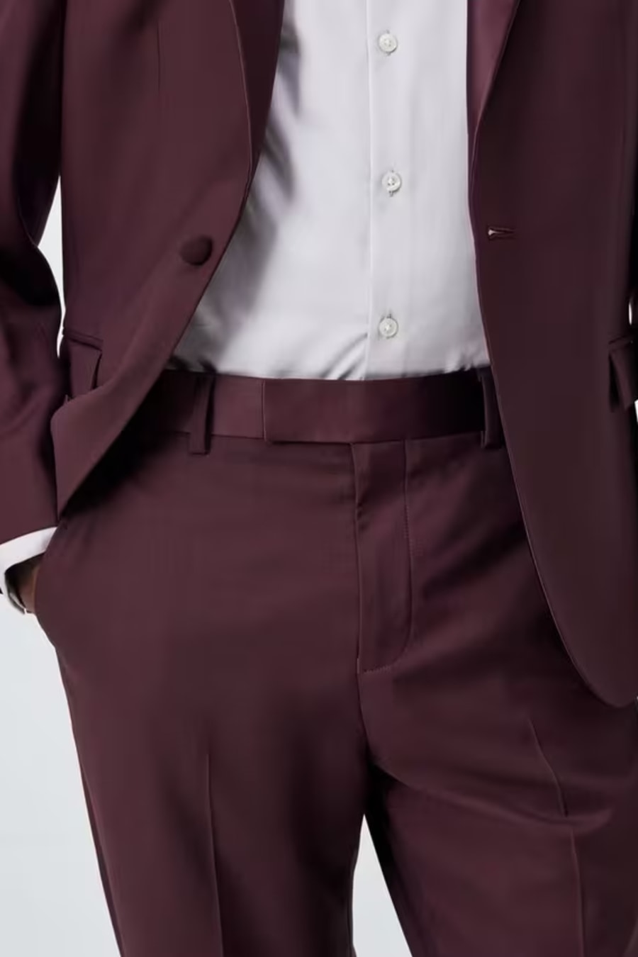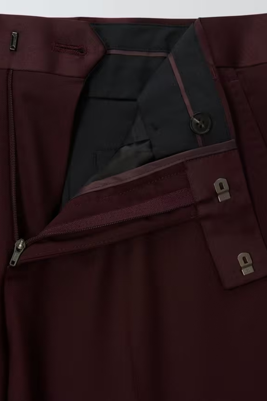 Woven in premium super 100's wool, these dinner trousers are tailored to our regular fit specification and feature a mid-rise and a straight leg.