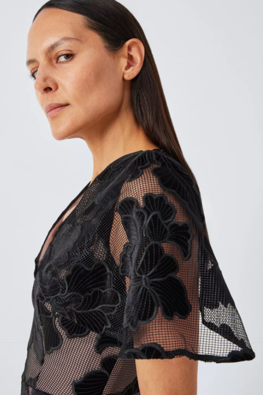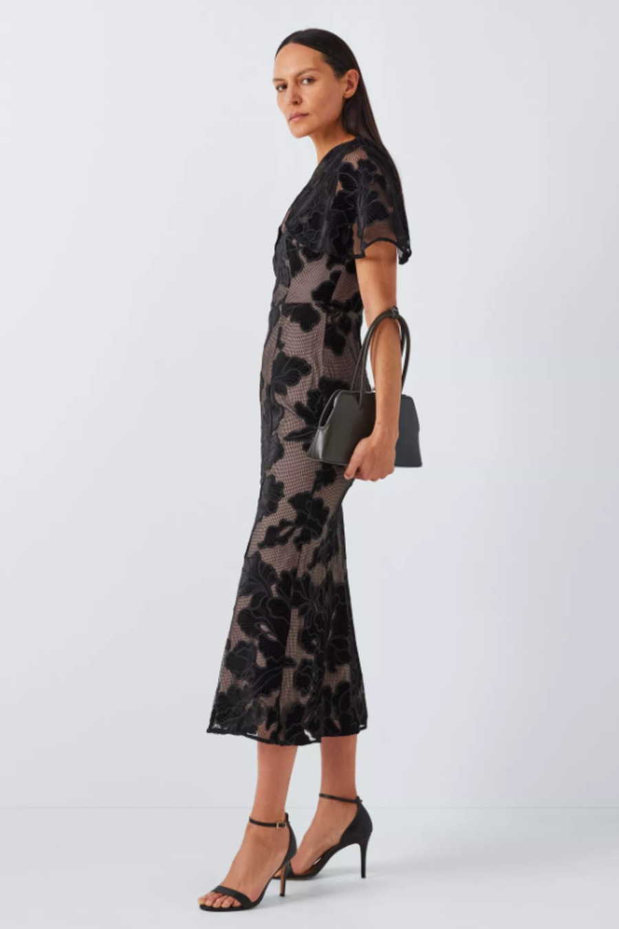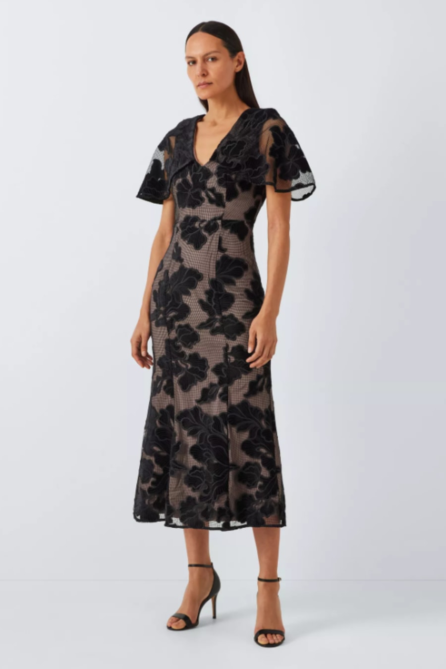 Zara V-Neck Velvet Floral Midi